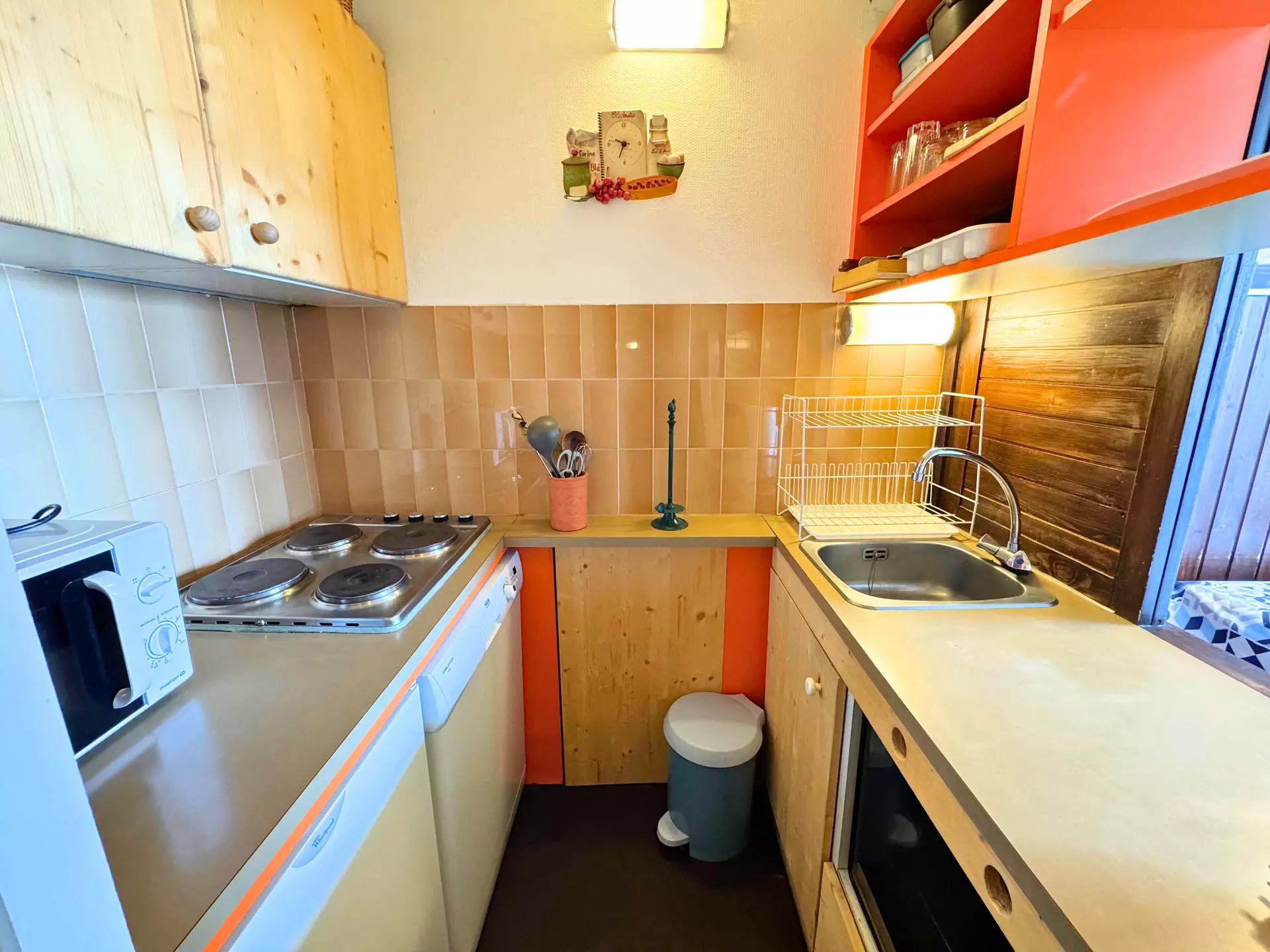 Résidence Armoise (N°67) 2 pièces pour 5 personnes, 28m², au 6ème étage par ascenseur, balcon (type loggia) exposé Sud-Ouest, vue sur la montagne