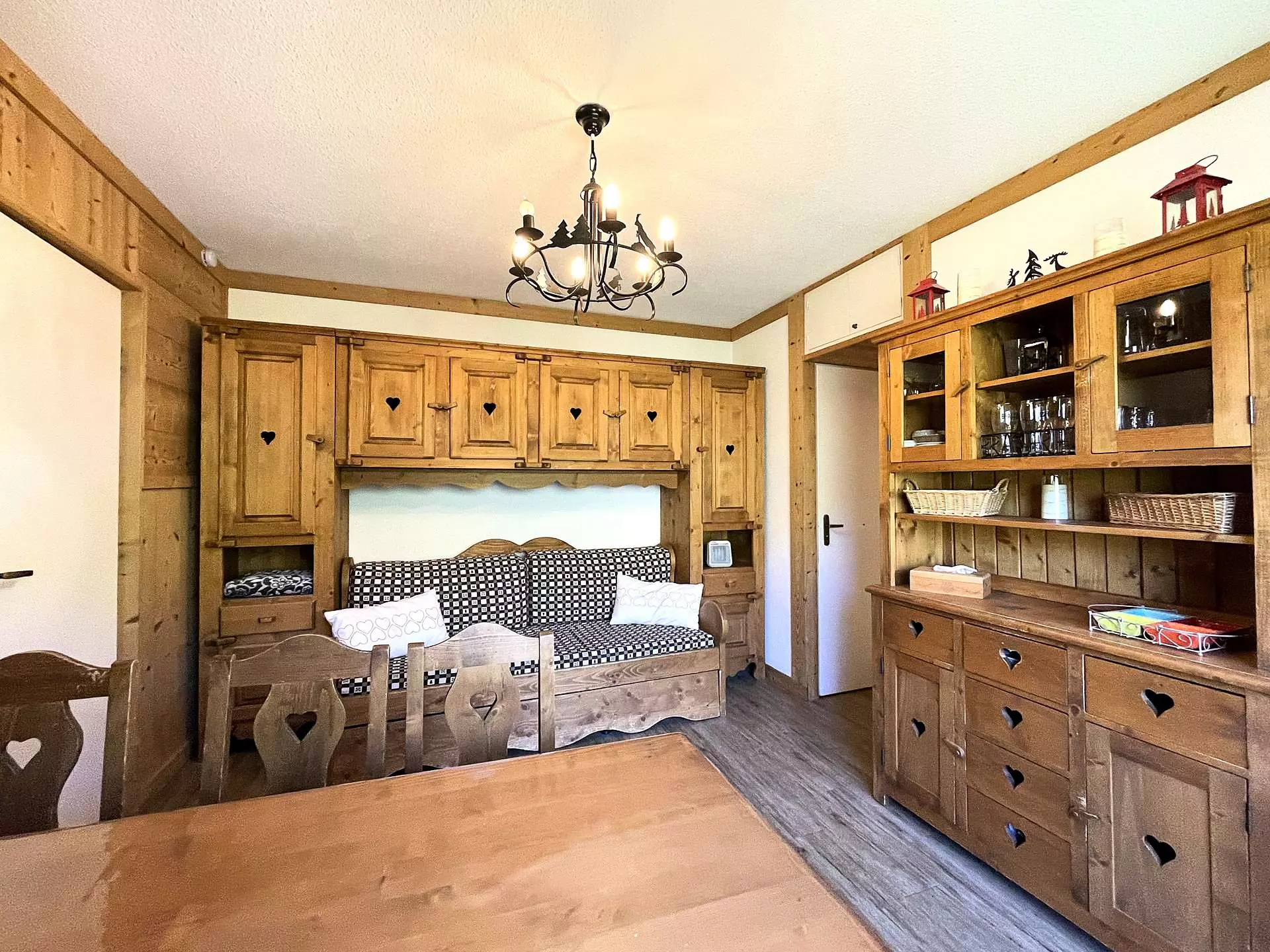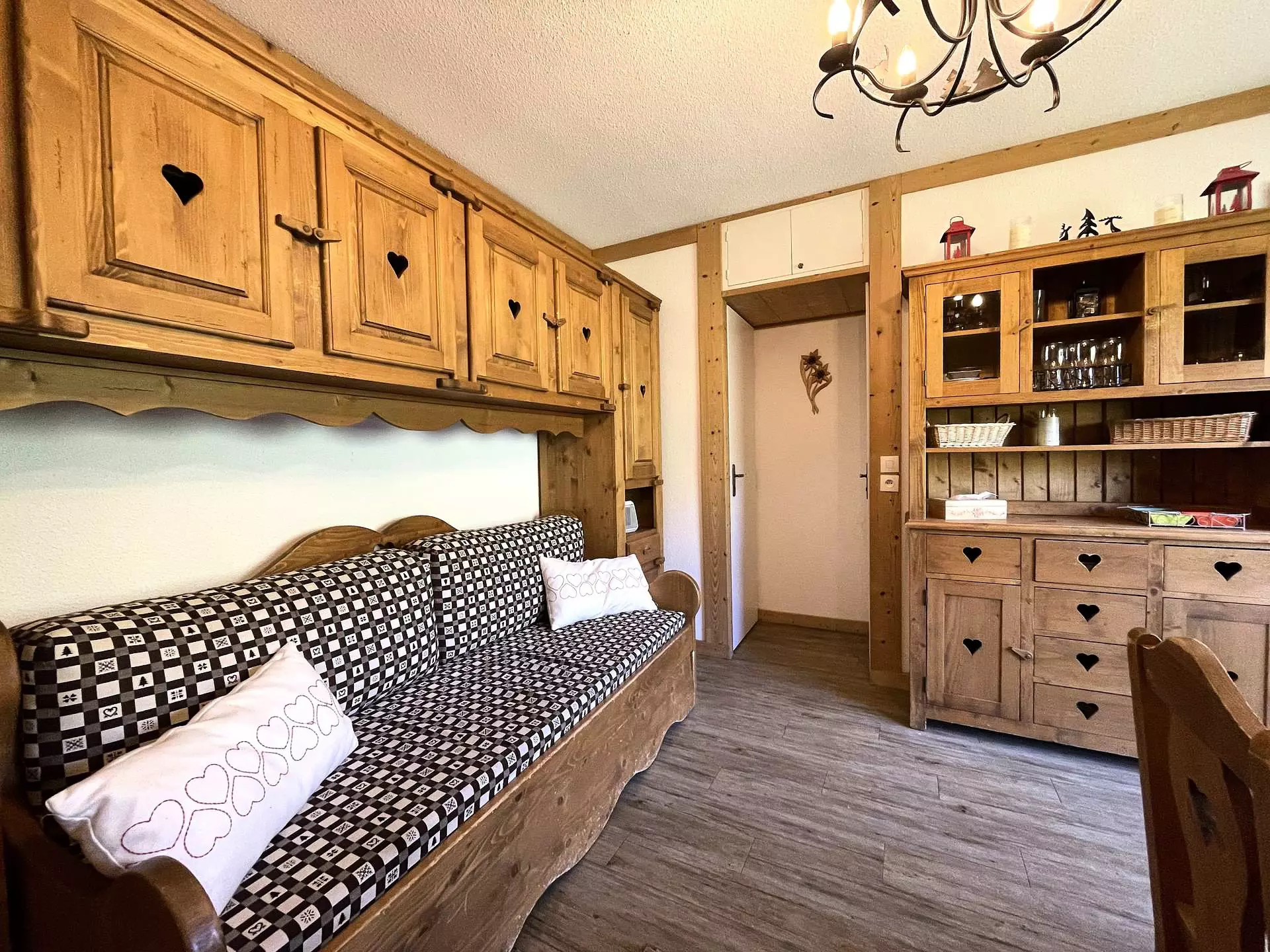 Résidence Jettay entrée "B" Bruant (N°76), 2 pièces séparées par une cloison mobile pour 4 personnes 25m², au 3ème étage par ascenseur, balcon exposé Ouest, vue sur la montagne