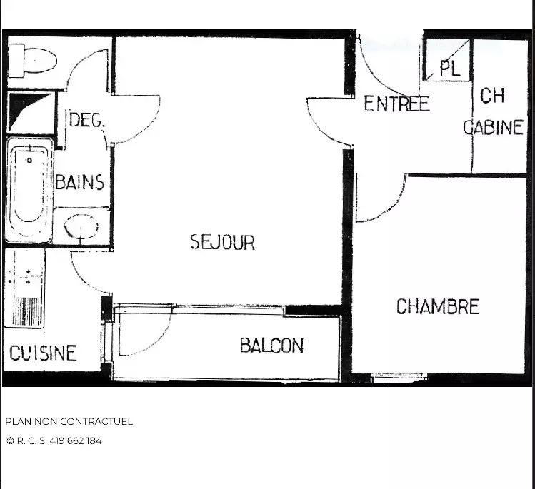 Résidence Jettay entrée "B" Bruant (N°35), studio pour 4 personnes 25m², orienté Sud-Est sans balcon, au rez de neige par ascenseur