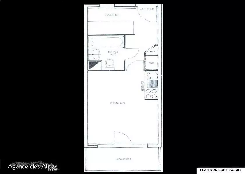 Résidence Necou (N°106), studio cabine pour 3 personnes 20m², au 1er étage par ascenceur, balcon exposé Ouest, vue sur la montagne