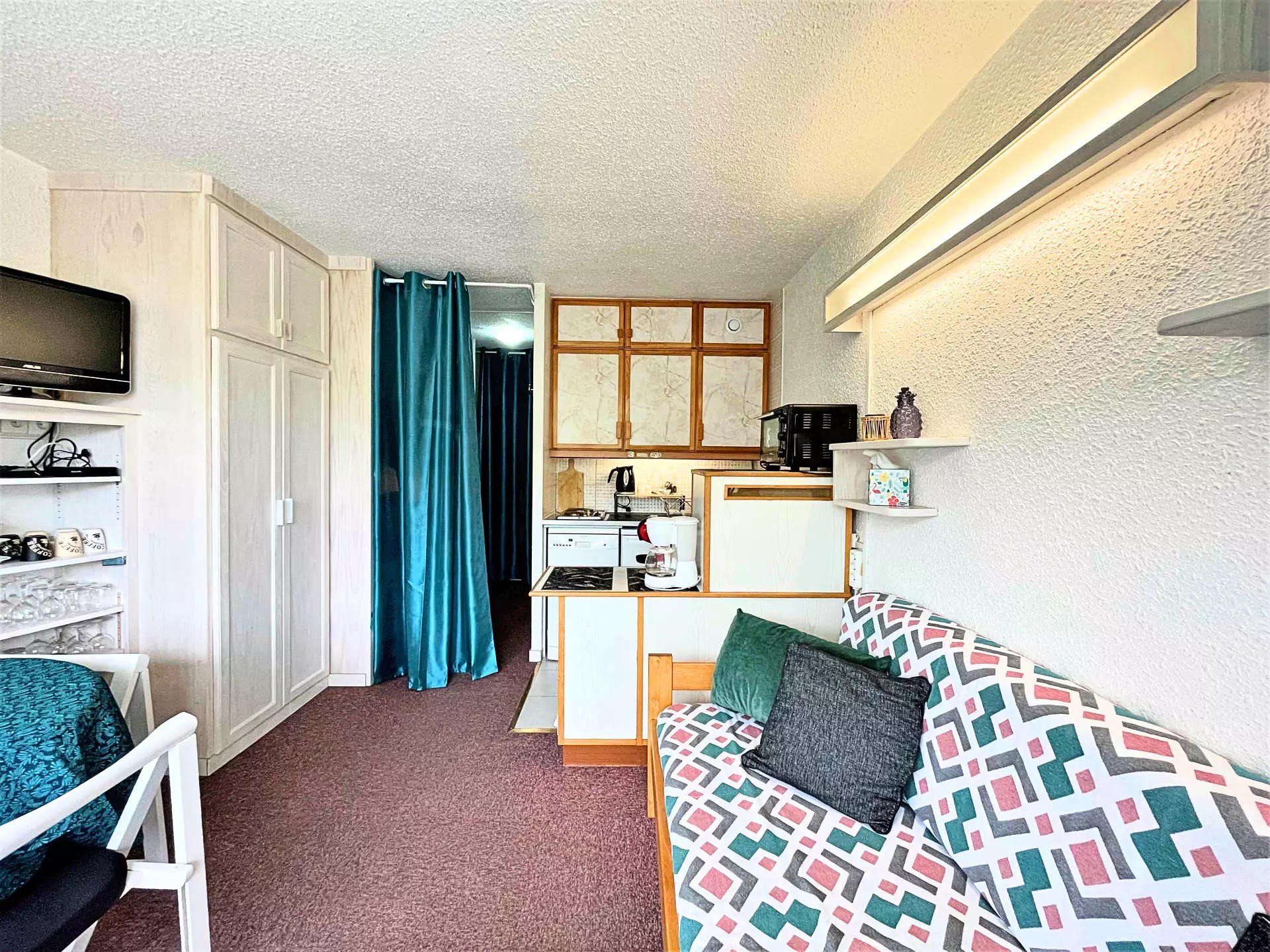 Résidence Tougnette (N°415), studio pour 3 personnes 20m², au 4ème étage par ascenseur, balcon exposé Sud-Ouest, vue sur la montagne. Résidence située au pied des pistes