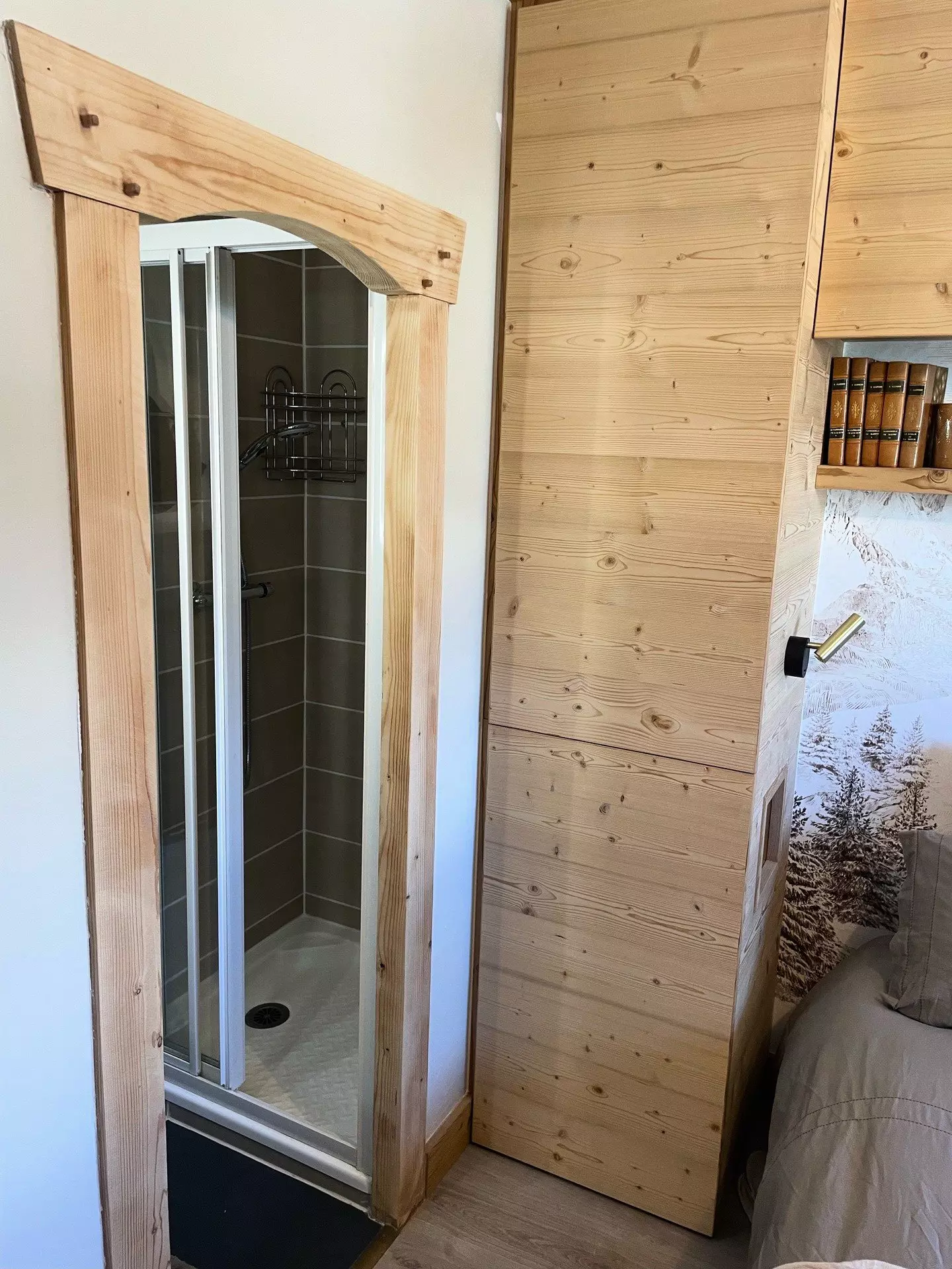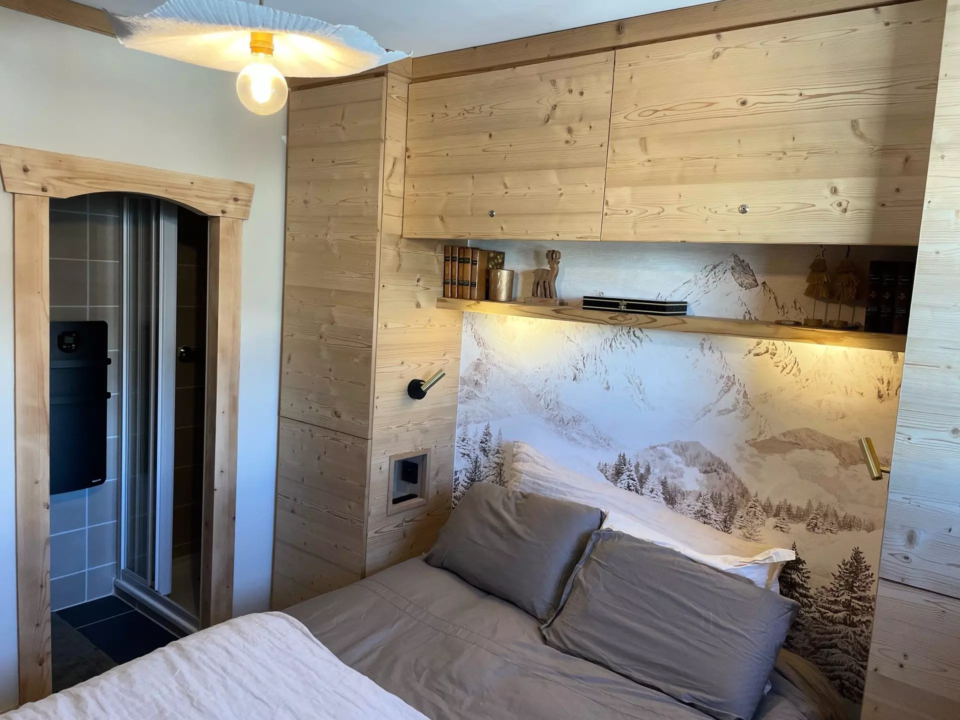 Chambre 1 en suite : lit double 140 x 190 cm avec salle de bain et douche