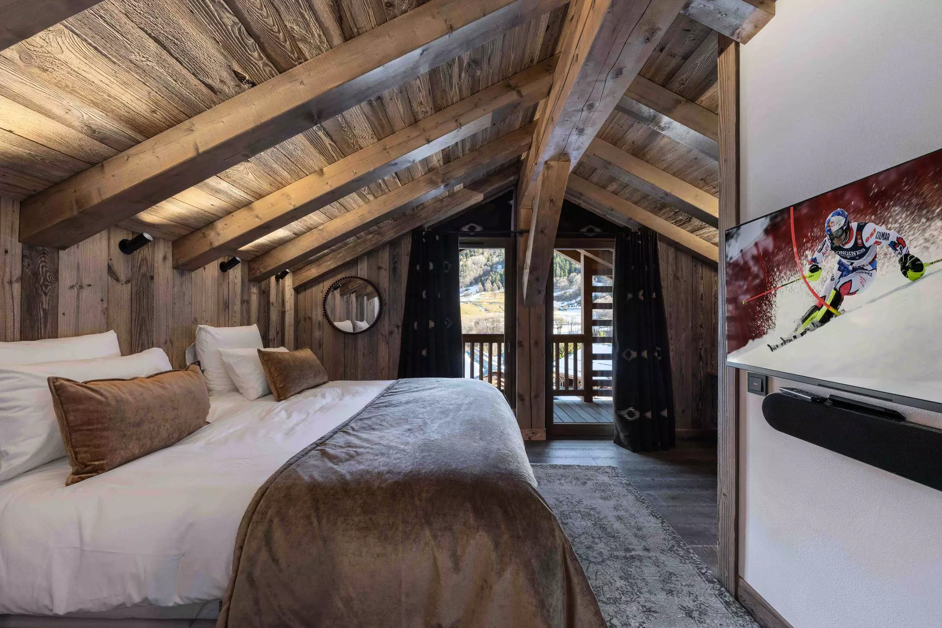 Chalet EDEL d'environ 157m², disposant de 4 chambres et un dortoir pour 10 personnes. Il est situé à 145m de l'arrêt de ski-bus gratuit qui mène à Méribel centre et à 250m de la télécabine l'Olympe qui mène directement au front de neige de Méribel.