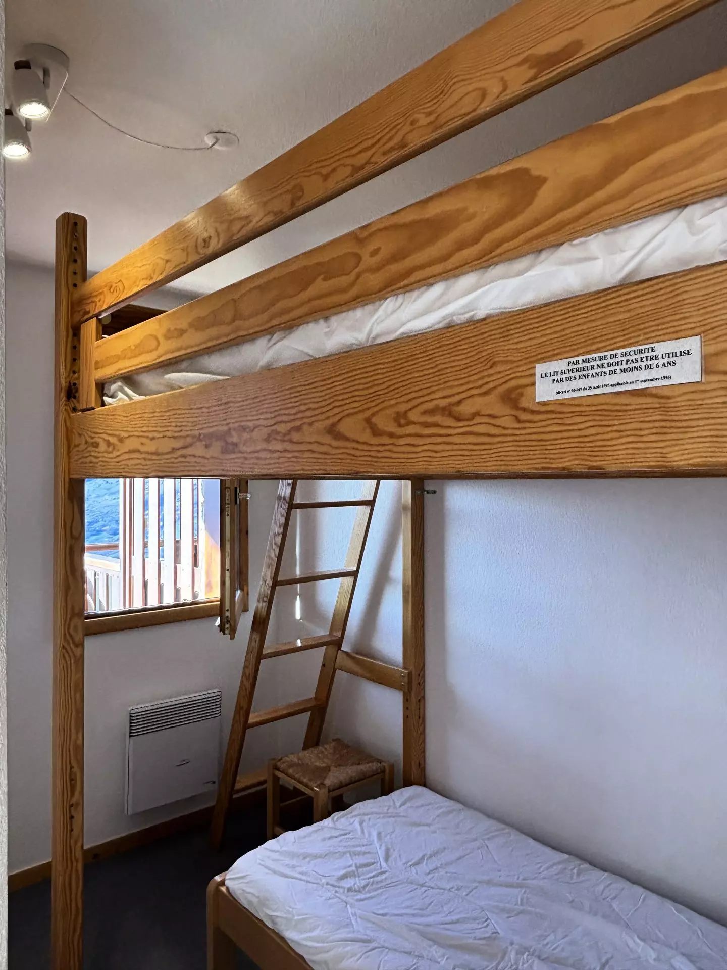 Une 2ème chambre avec 1 lit double mezzanine (largeur 120 cm) et 1 lit simple. Merci de noter que le couchage en hauteur ne convient pas à des enfants de moins de 6 ans.