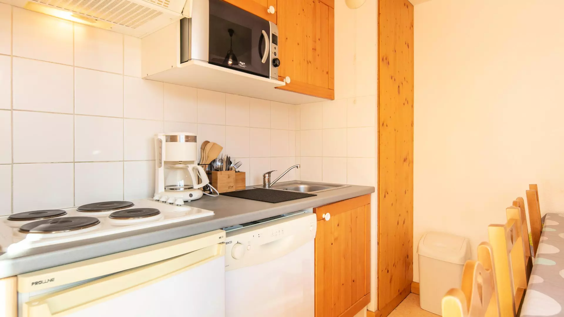 - Cuisine totalement équipée (réfrigérateur, micro-ondes, lave-vaisselle, vaisselle/couvert, ustensiles/cuisine, cafetière).