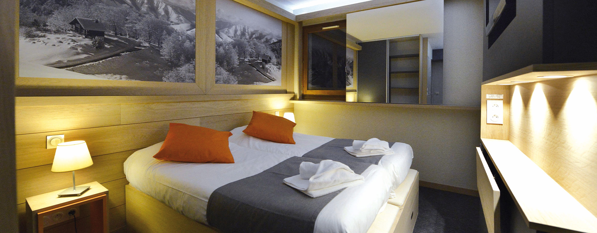 (2 chambres 2 personnes communicantes), possibilité d'ajouter un lit bébé pour les enfants de moins de 2 ans. Occupation maximale des chambres obligatoire pendant les vacances scolaires.