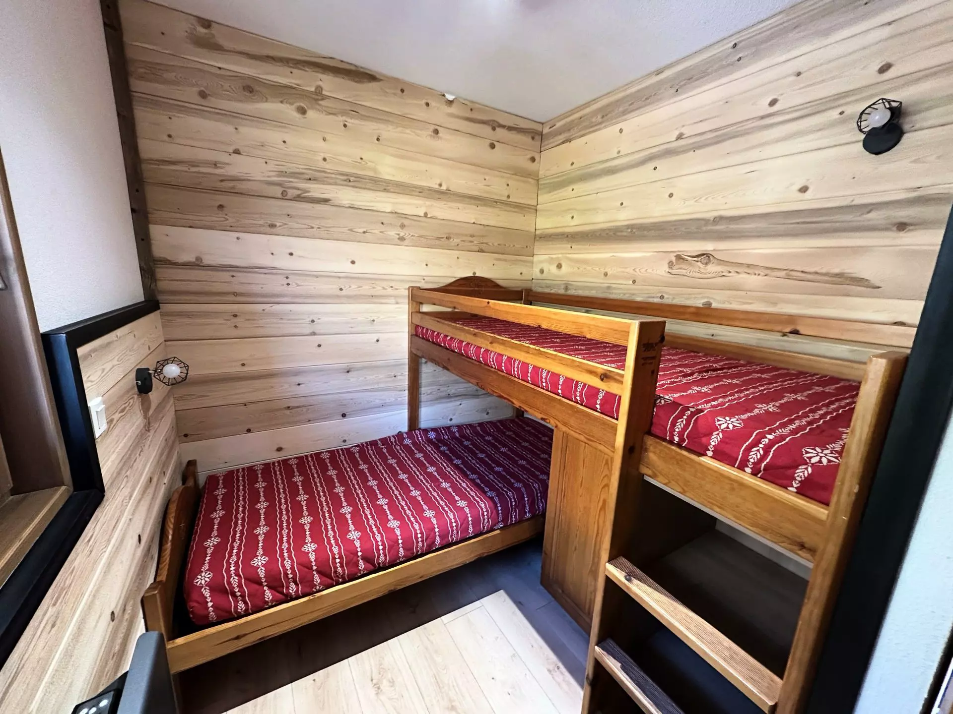 Chambre 2 (fermée par une porte coulissante) : 2 lits superposés.