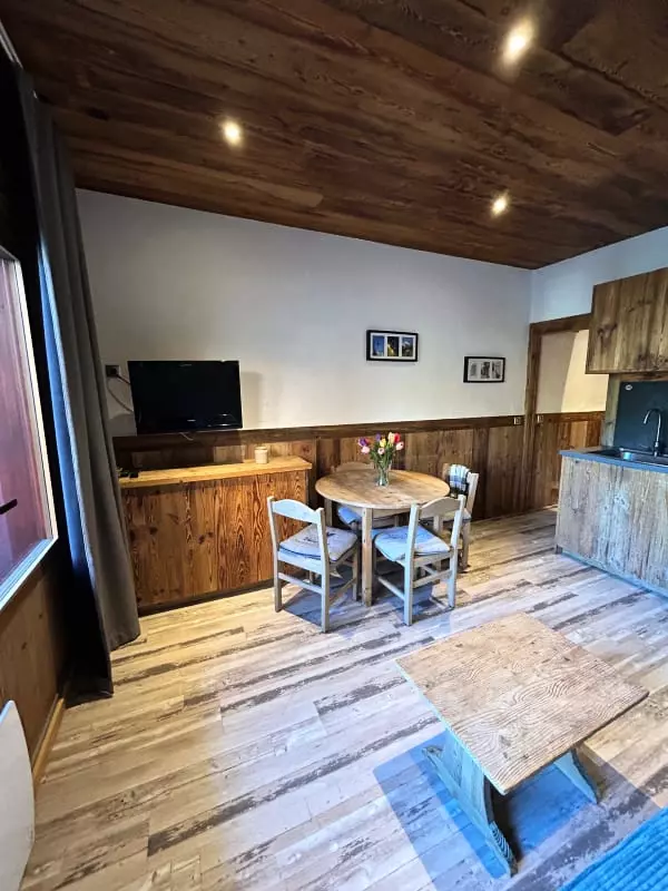 Joli appartement cozy et pratique, situé dans la belle résidence Les Chalets de Solaise, au coeur de Val d'Isere, à moins de 5 minutes des télécabines en navette et proche des restaurants.