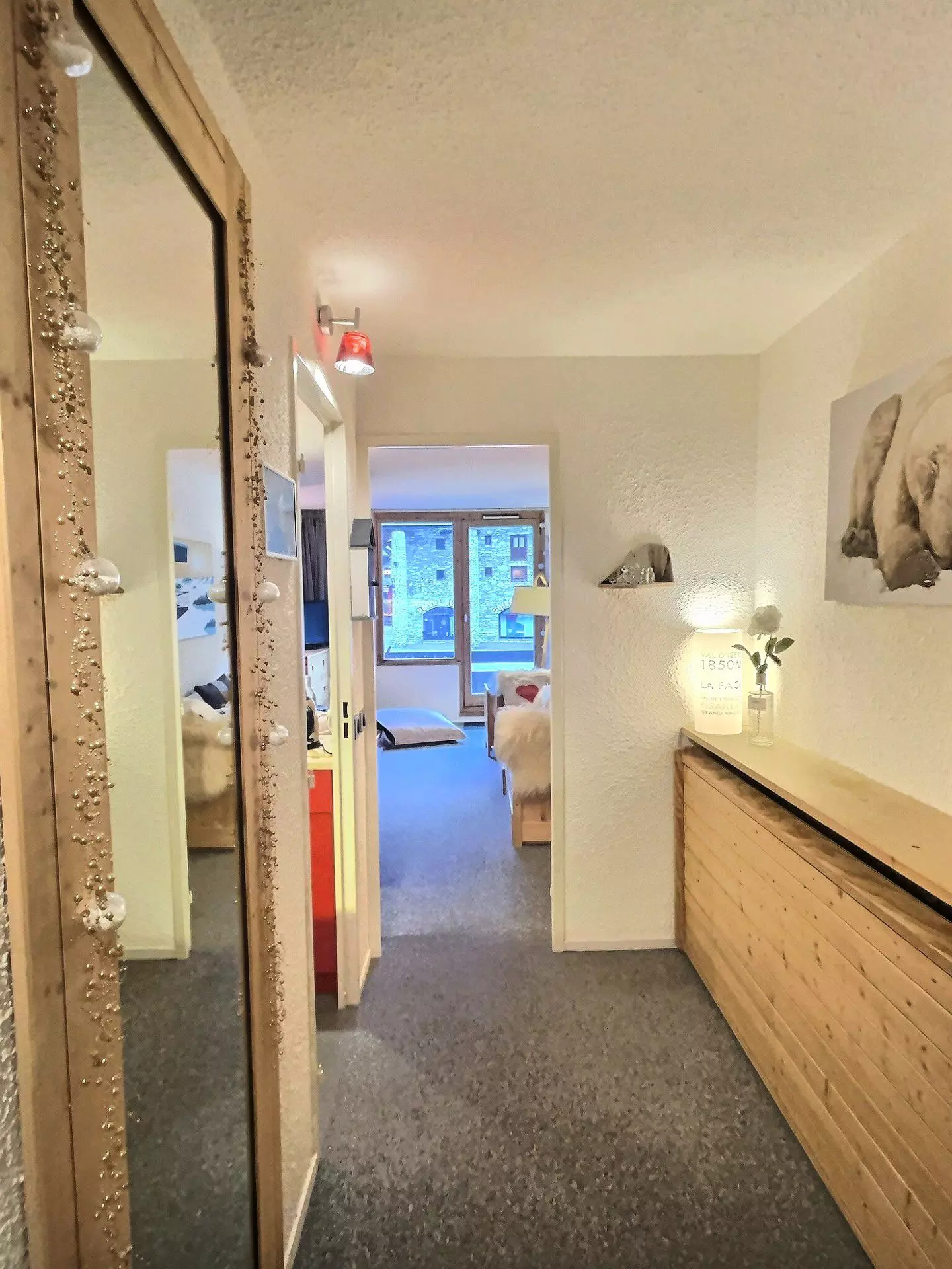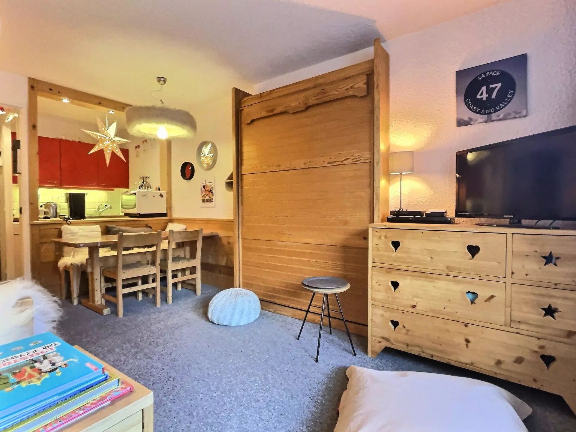 Pour votre séjour au ski ou vos vacances d'été à Val d'Isère, réservez ce joli 2 pièces disposant d'un balcon exposé Sud avec vue sur le village, la forêt et les montagnes.