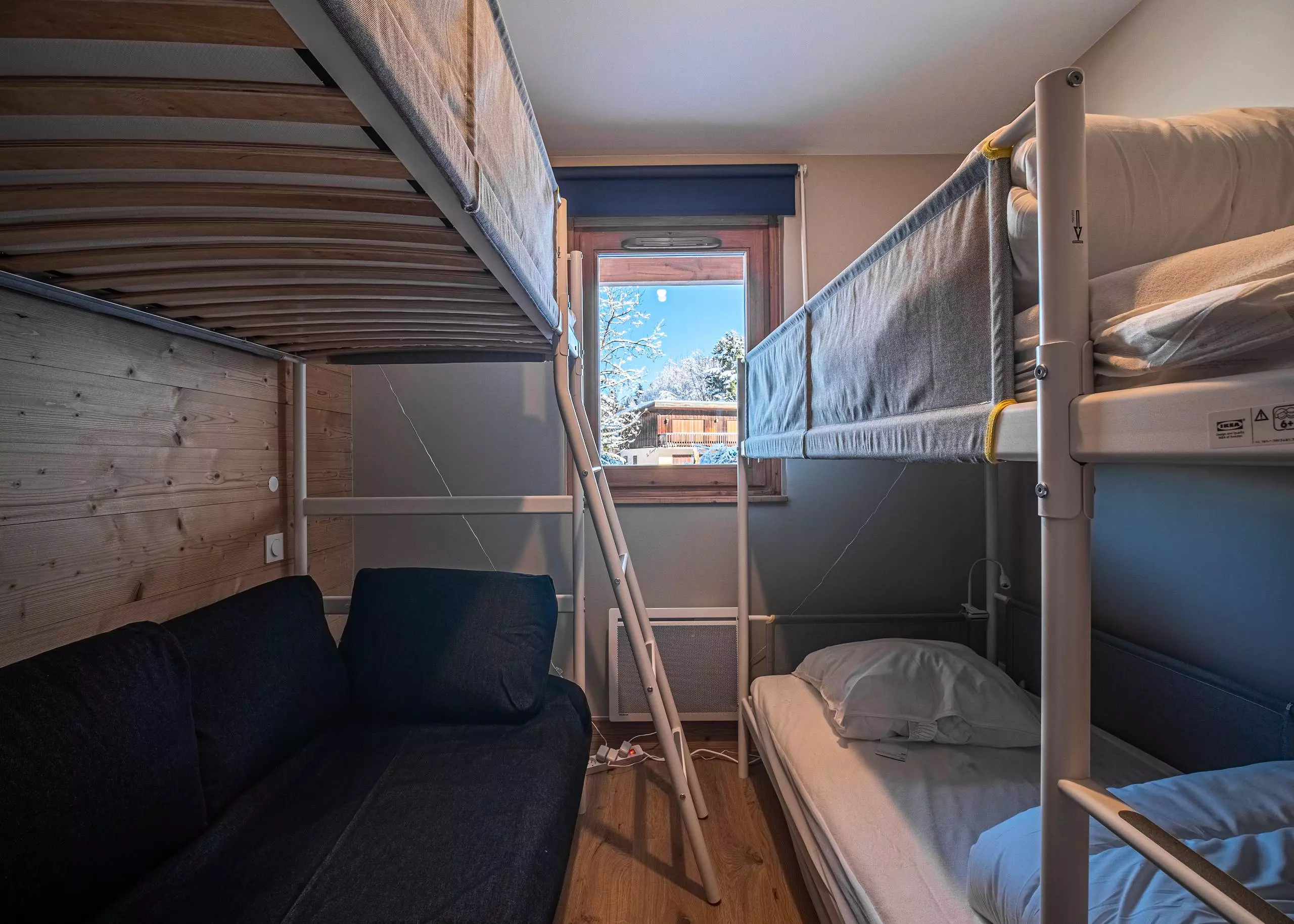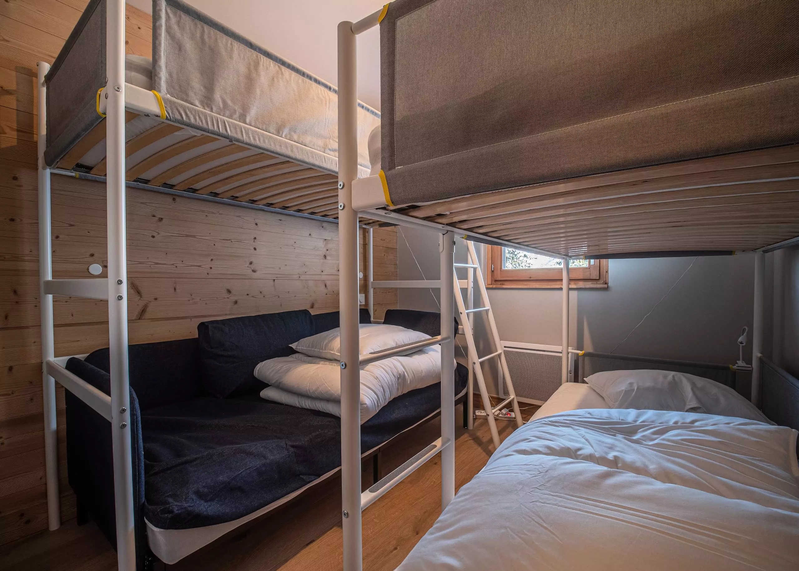 - Chambre 2: 1 ensemble de lit superposés (2 personnes. 80 x 190 cm) et 1 ensemble de lit mezzanine (2 personnes. 80 x 190 cm)