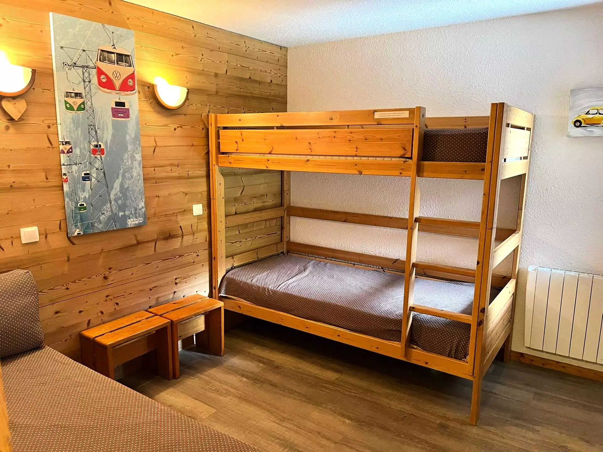 Il possède une grande chambre avec lits superposés (en 90 cm) et une banquette et un lit gigogne.