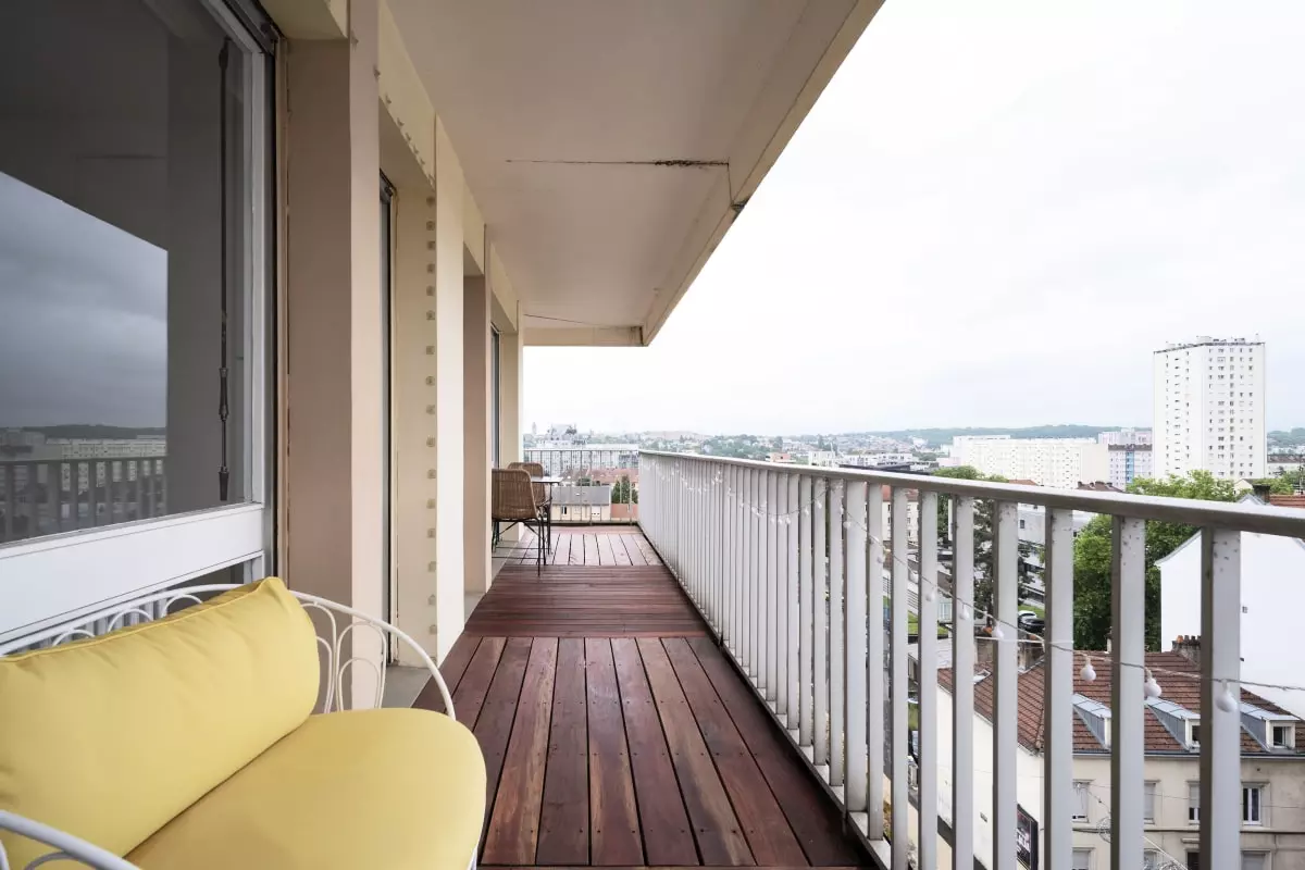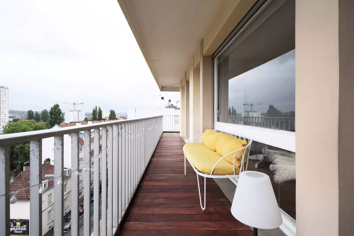 • Balcon filant avec espace repas extérieur