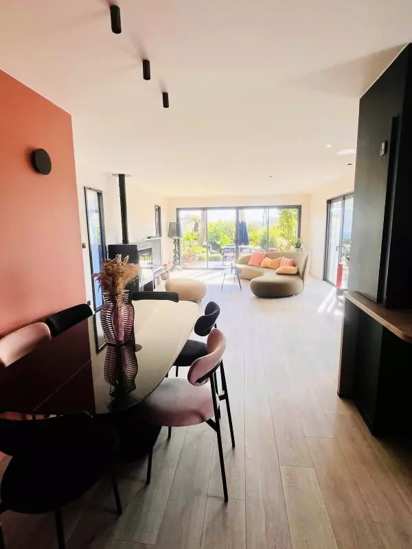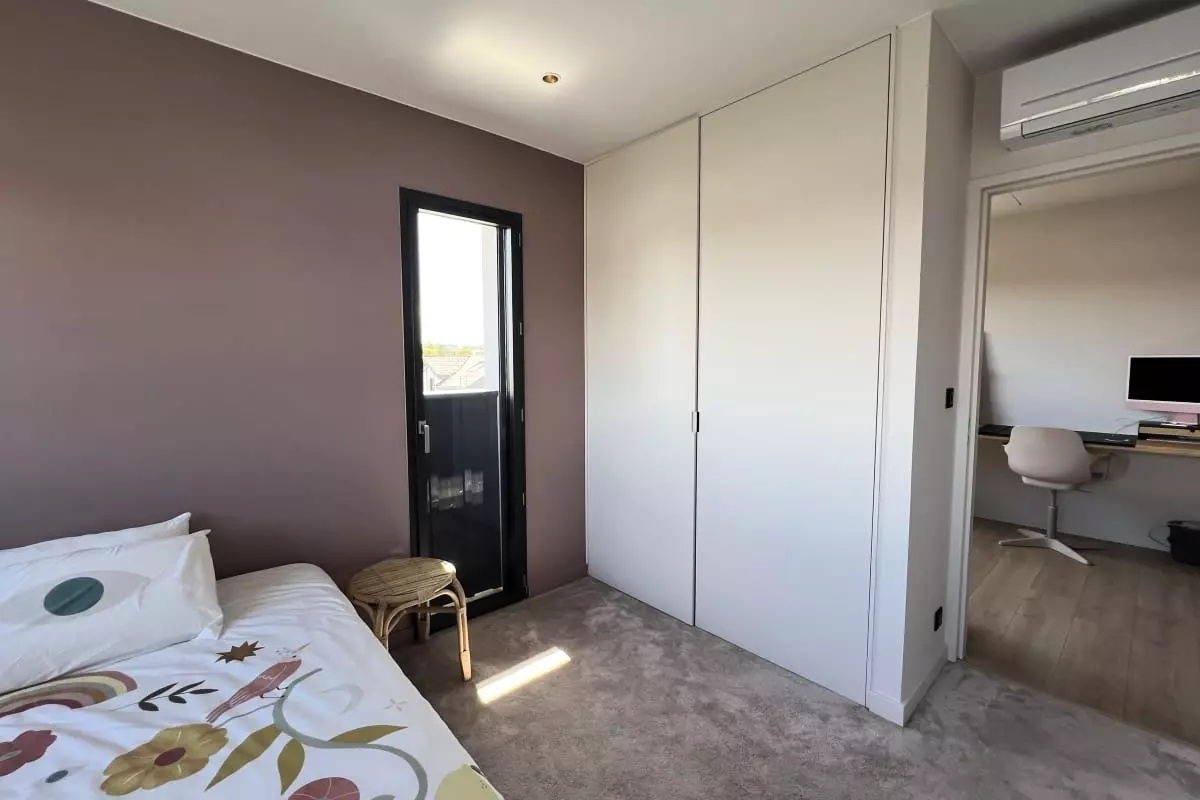 Profitez d'une pièce de vie lumineuse et conviviale ouverte sur l'extérieur. Partager de bons moments en famille dans cette cuisine moderne tout équipée. Au même niveau, la suite parentale avec dressing et salle de douche offrant un accès direct au jardin. A l'étage, se trouve deux chambres se partageant une salle de bain avec wc. Chacunes disposant de son balcon avec vue sur la ville. Un espace bureau est accessible pour les travailleurs.