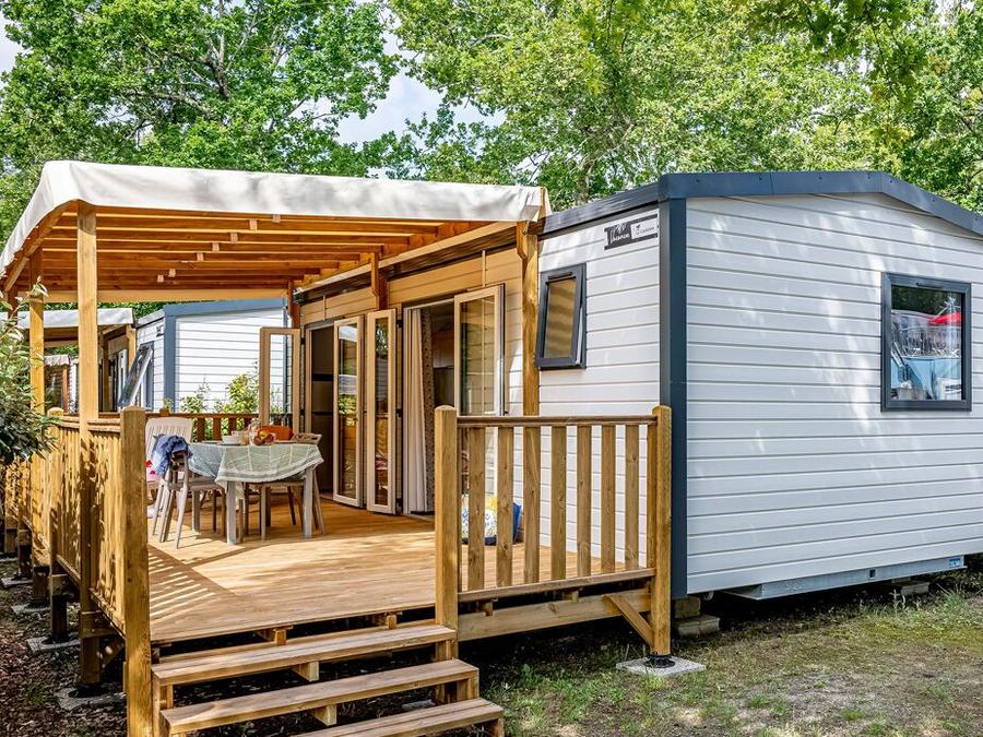 Mobilhome 4 personnes - PREMIUM 28m² - 2 chambres + TV + terrasse semi-couverte + draps + serviettes