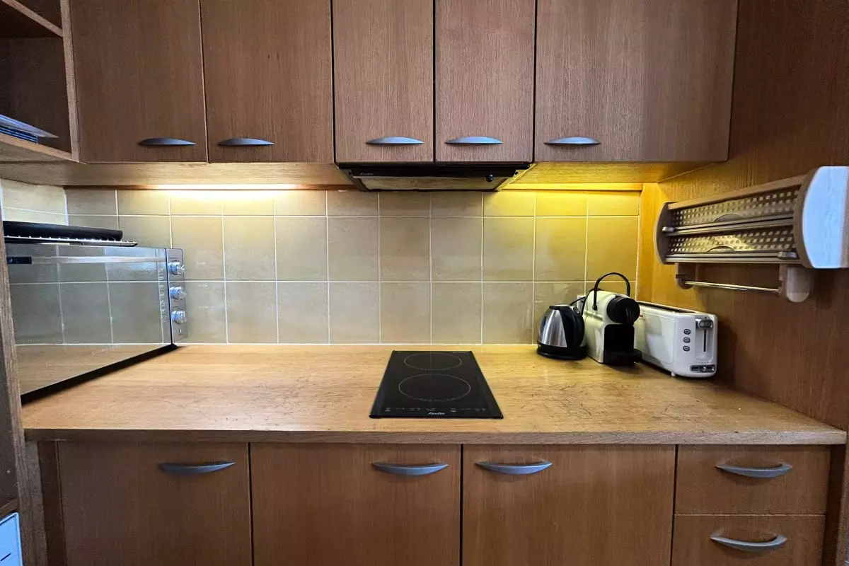 La cuisine, ouverte sur le salon, est entièrement équipée afin que vous puissiez cuisiner comme à la maison, avec tout le nécessaire à disposition.