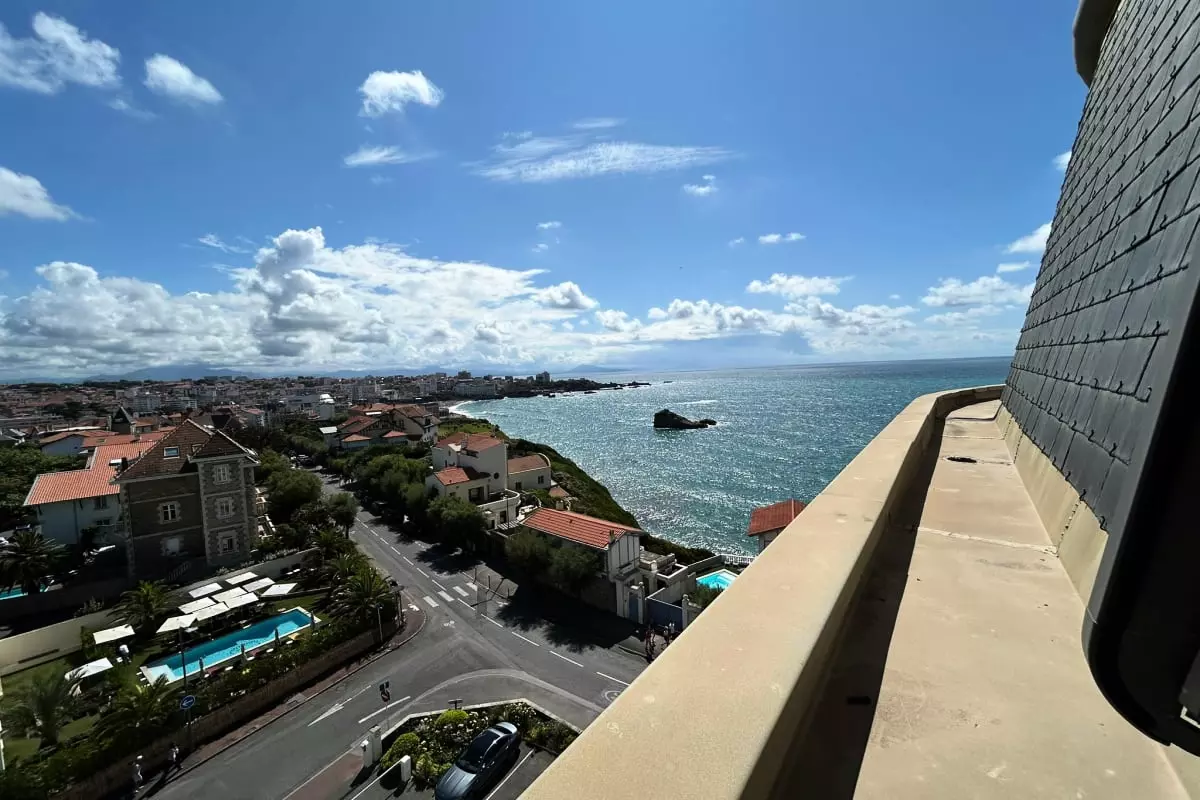 La pièce de vie offre une vue imprenable sur la ville de Biarritz et ses plages.