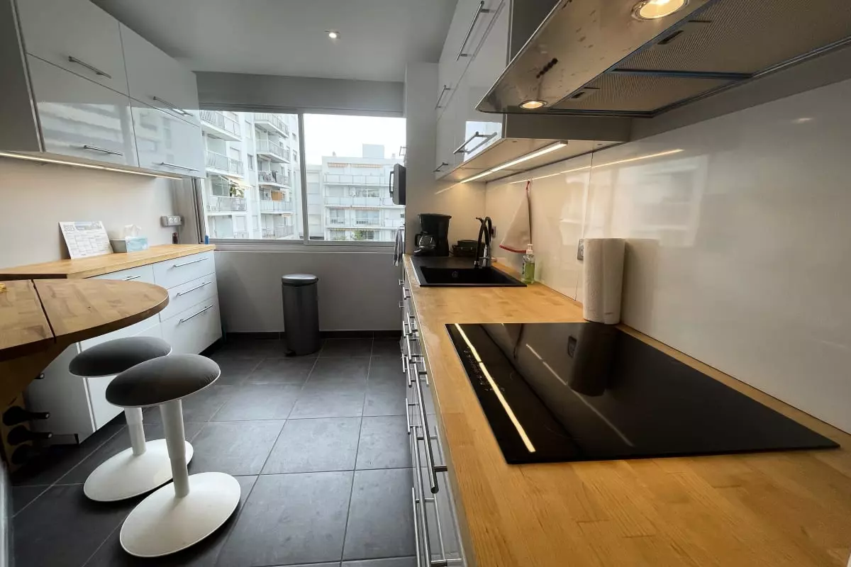 La cuisine, parfaitement équipée vous permettra de cuisiner comme à la maison, elle est semi-ouverte sur le salon lumineux, dont vous pourrez profiter.