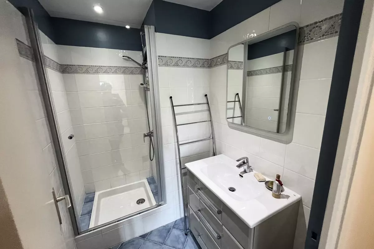 Les deux salle d’eau sont, confortable et raffinée propose une douche, un meuble-vasque simple, un sèche-serviettes ainsi qu’un WC séparés.