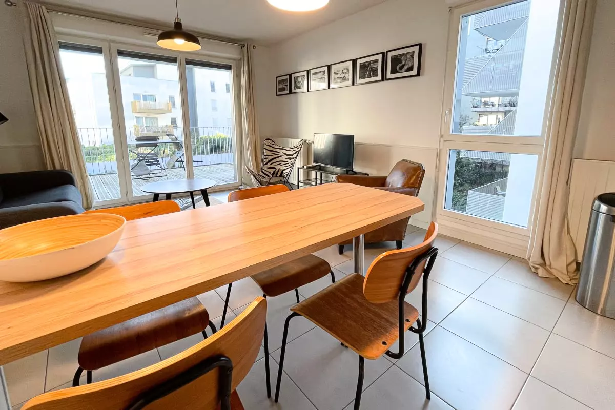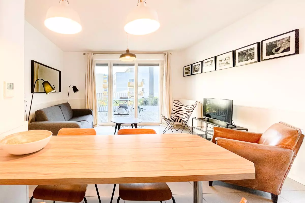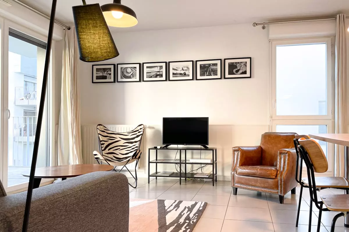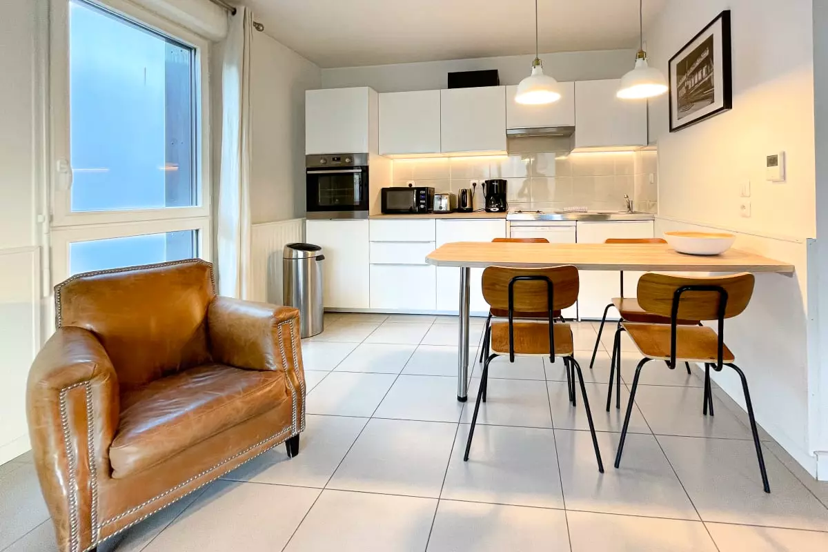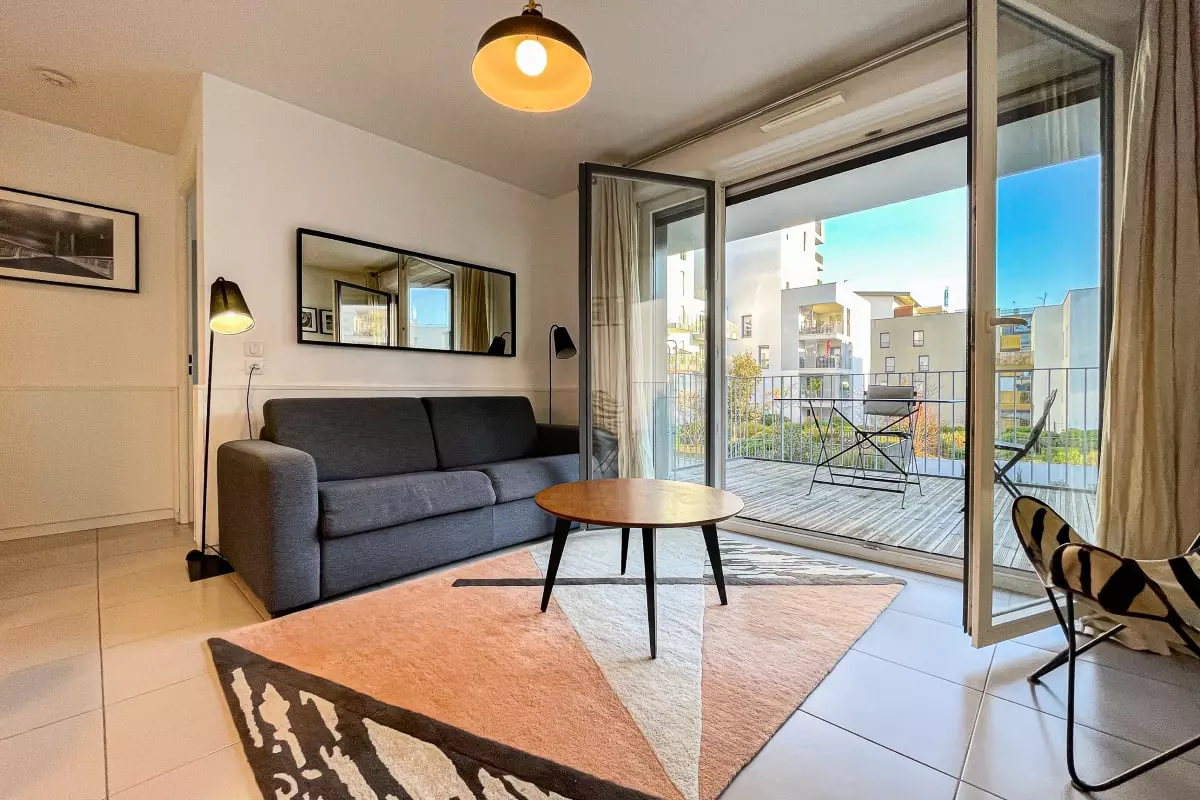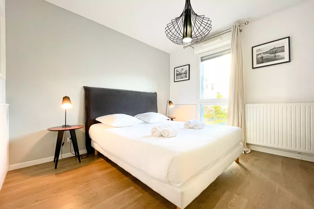 Découvrez notre appartement moderne et élégamment décoré situé rue Lucie Faure, au cœur du Quartier des Bassins à flot de Bordeaux. Ce quartier récent, à deux pas du Musée du Vin et proche des Chartrons, est l'endroit idéal pour un séjour authentique dans la ville.