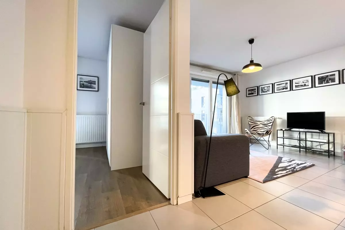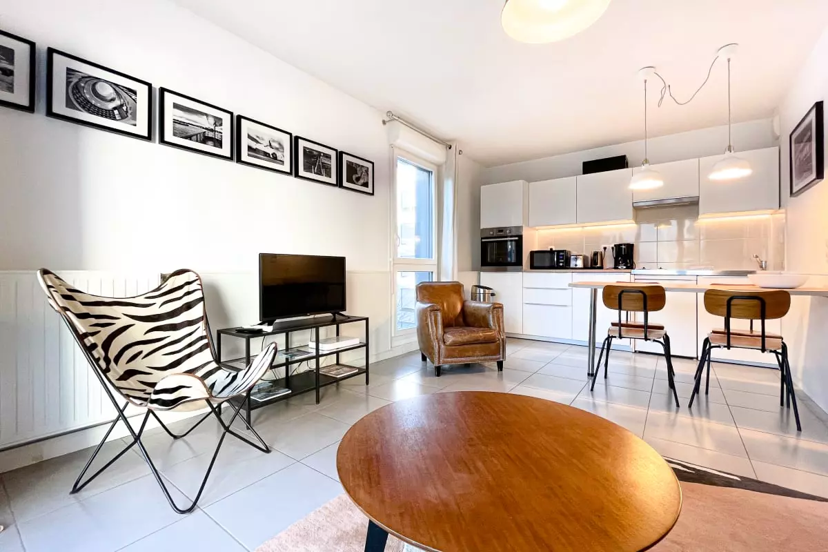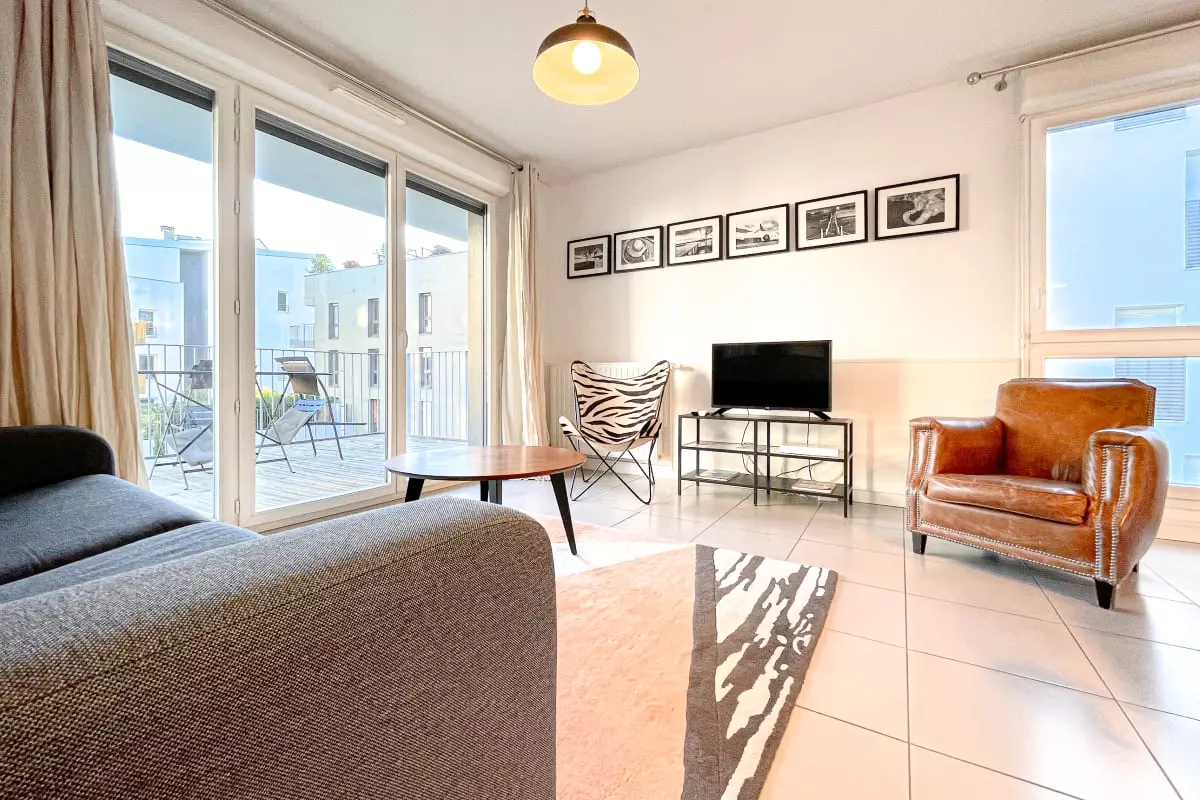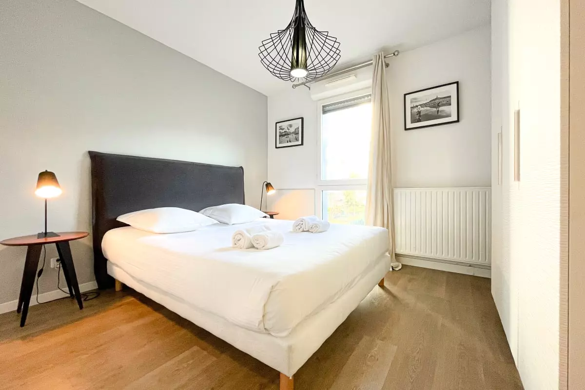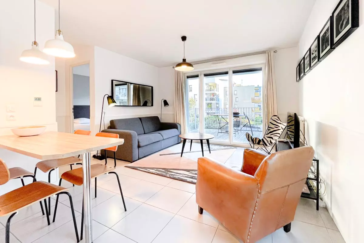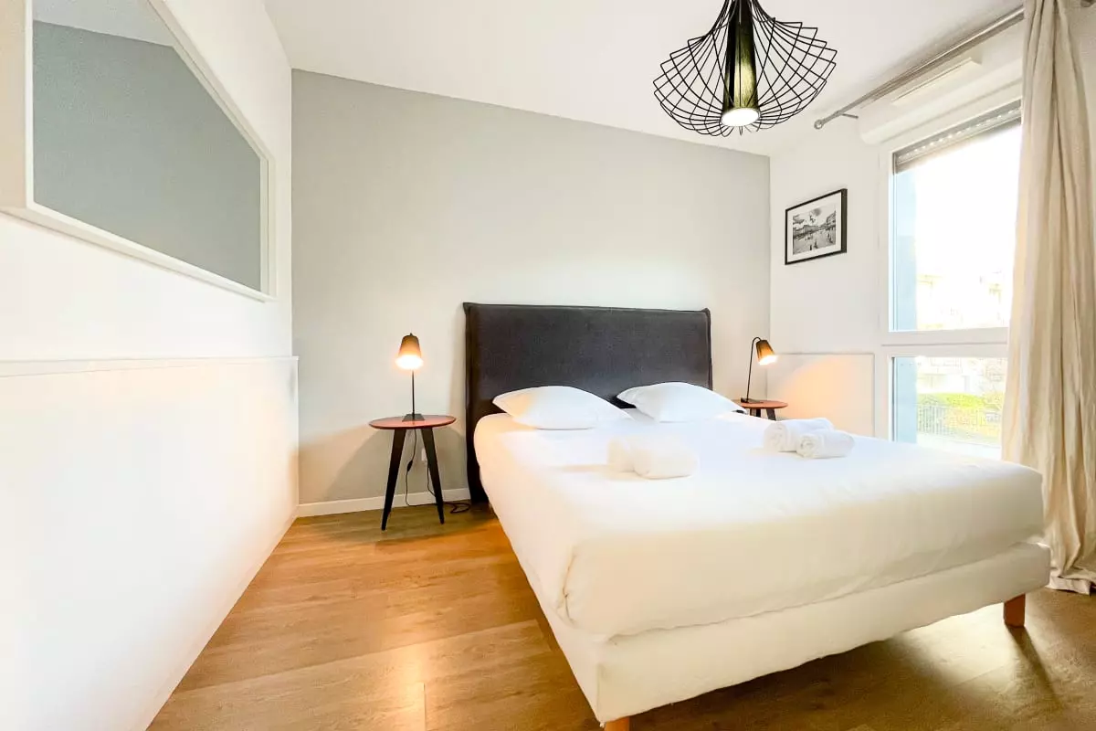 Découvrez notre appartement moderne et élégamment décoré situé rue Lucie Faure, au cœur du Quartier des Bassins à flot de Bordeaux. Ce quartier récent, à deux pas du Musée du Vin et proche des Chartrons, est l'endroit idéal pour un séjour authentique dans la ville.