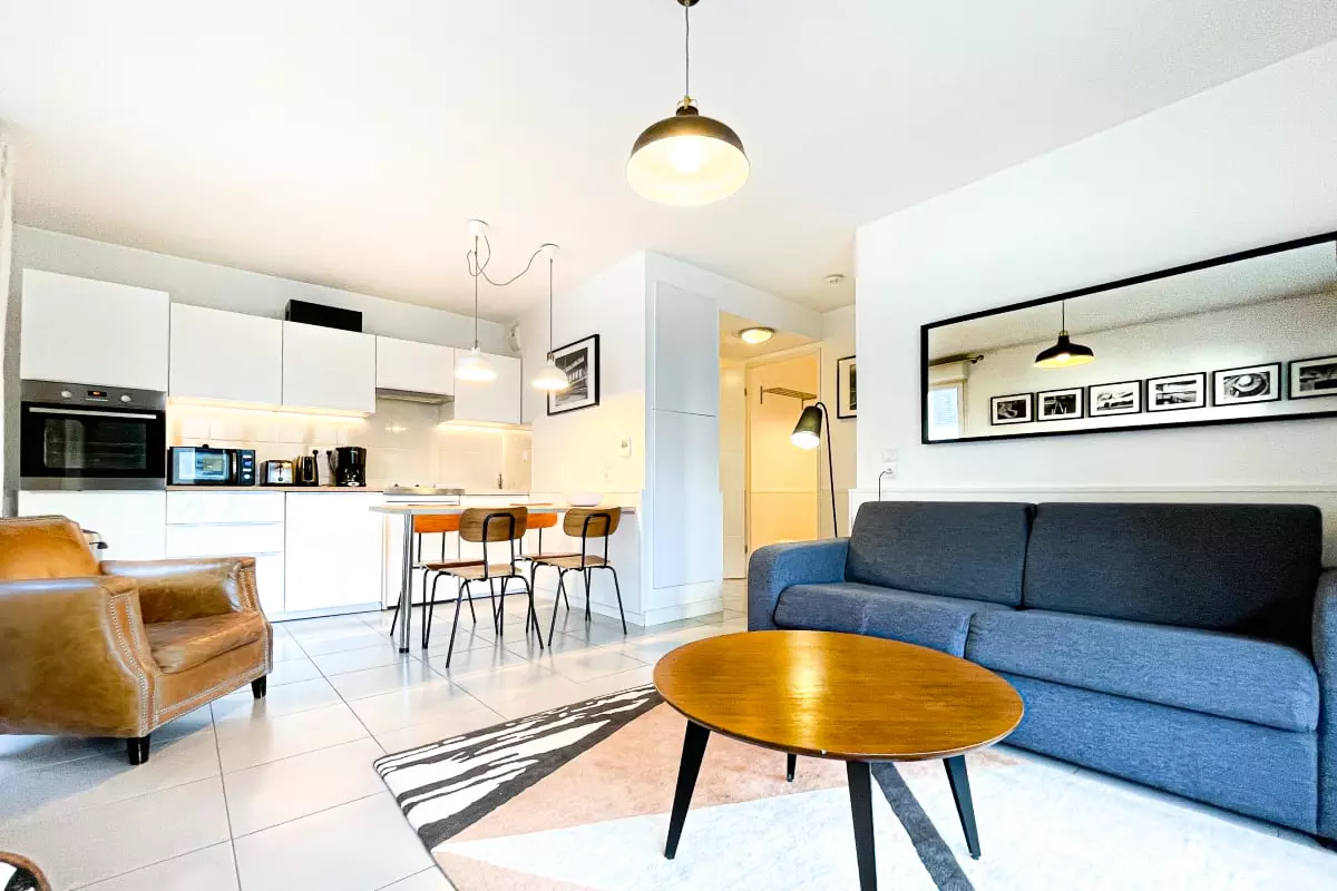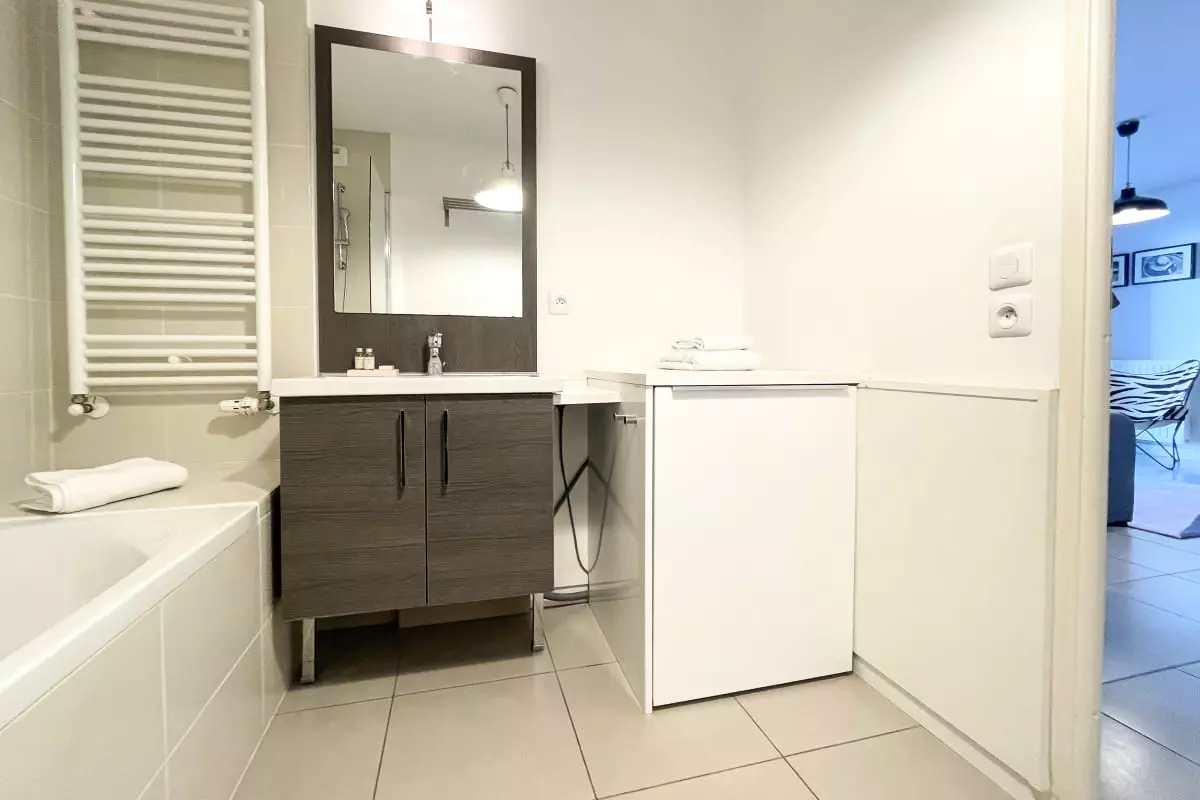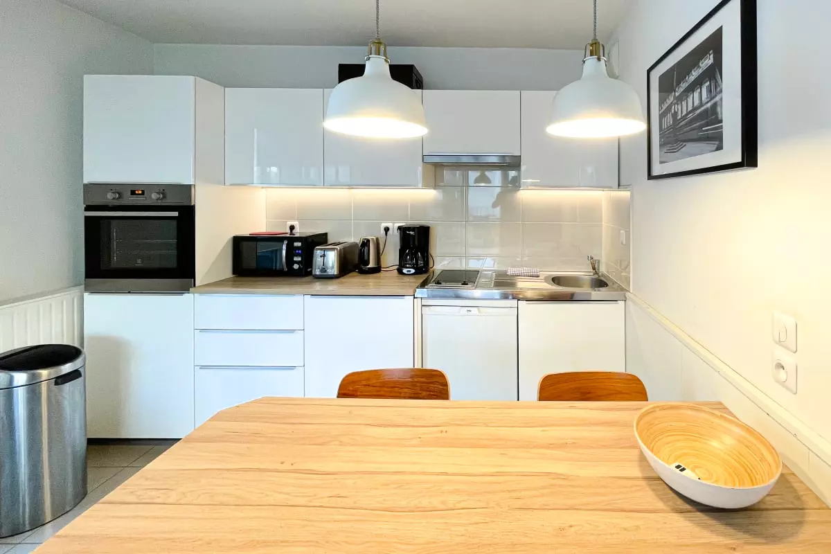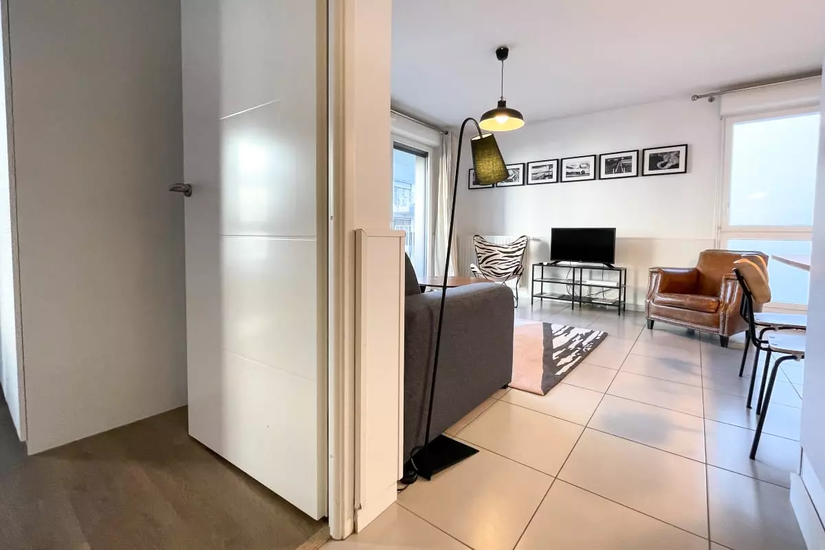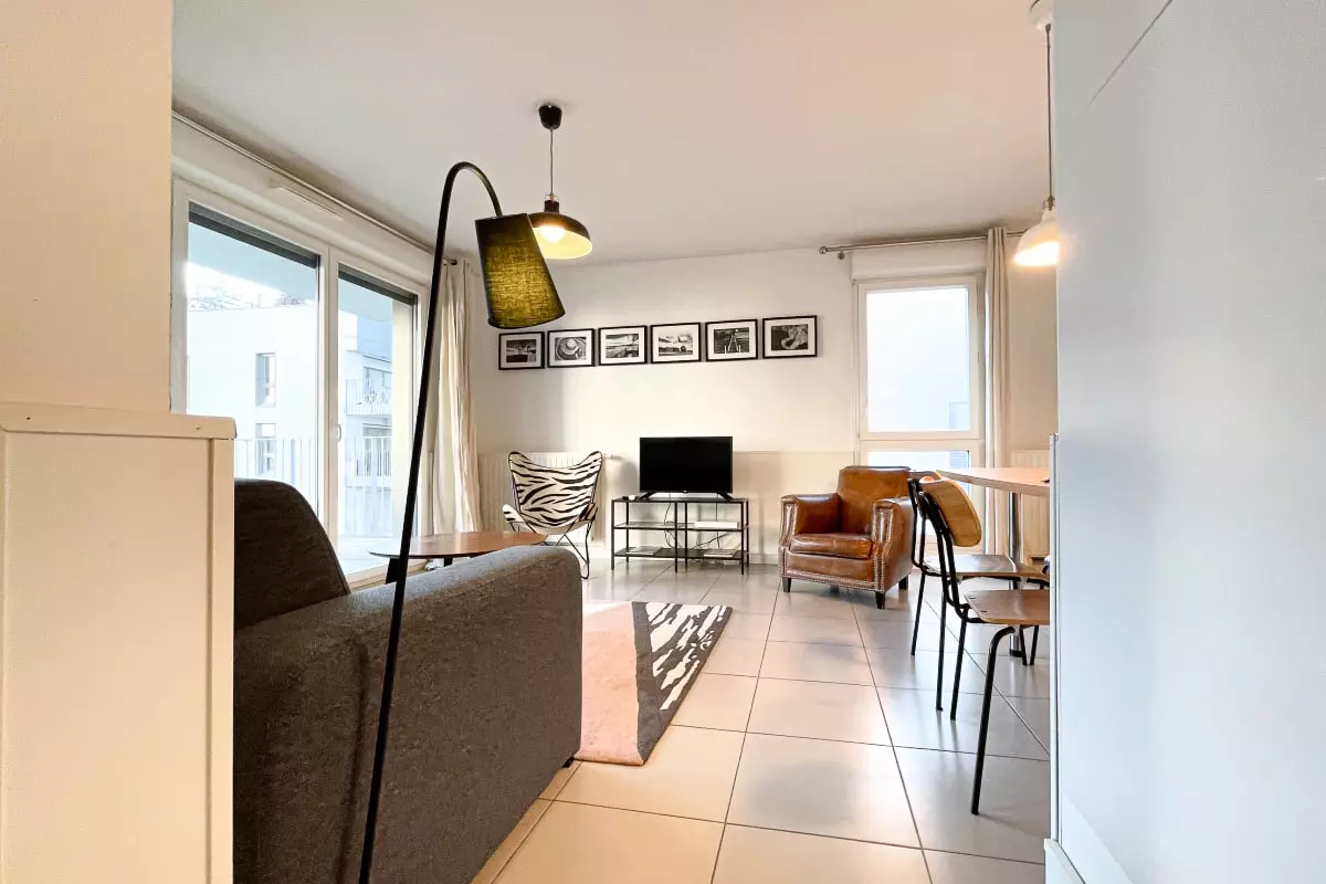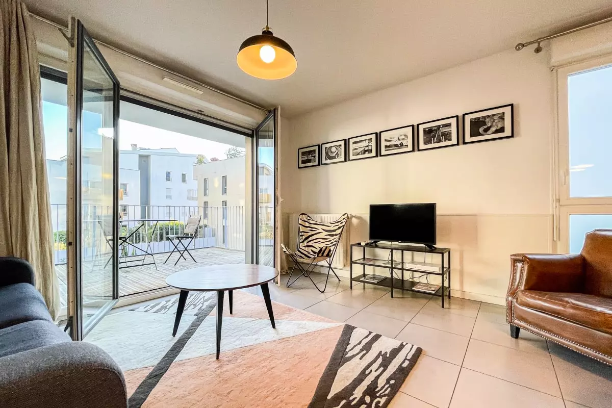 Découvrez notre appartement moderne et élégamment décoré situé rue Lucie Faure, au cœur du Quartier des Bassins à flot de Bordeaux. Ce quartier récent, à deux pas du Musée du Vin et proche des Chartrons, est l'endroit idéal pour un séjour authentique dans la ville.