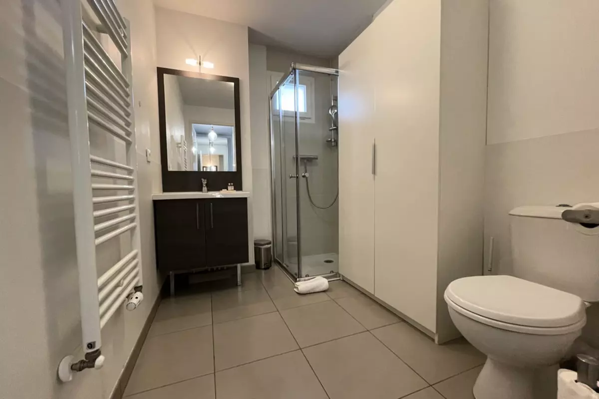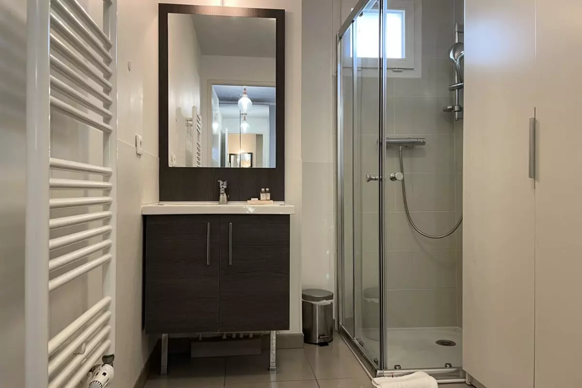 La salle d'eau est dotée d'une belle douche et de commodités supplémentaires, assurant un séjour à la fois pratique et agréable. Un point fort de ce studio est sa magnifique terrasse illuminée, offrant un lieu idéal pour se détendre au cours de votre séjour.