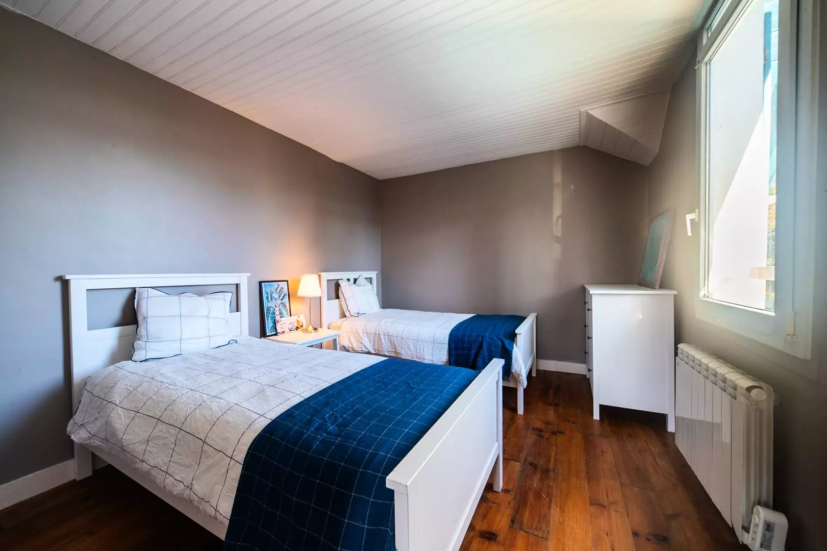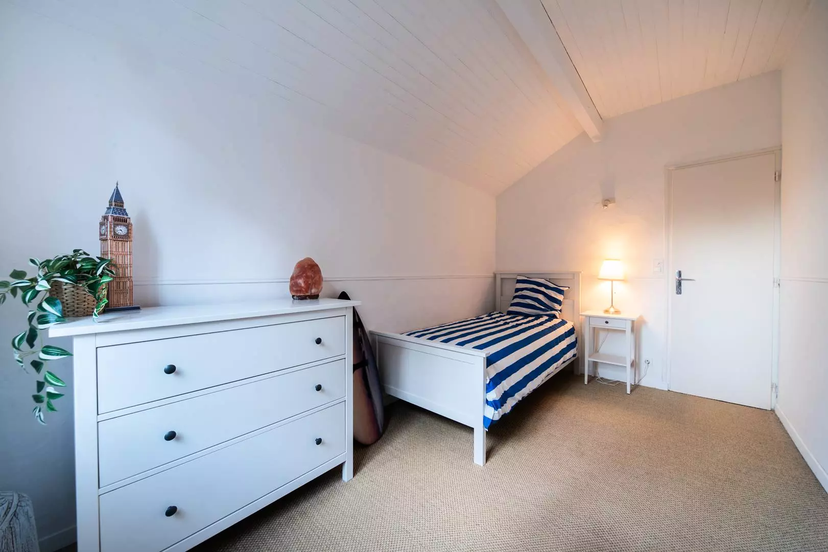 Au rez-de-chaussée se trouvent une chambre avec un lit double en 160, une chambre avec deux lits simples, un bureau en alcôve équipé d'un lit d'appoint, ainsi qu'une chambre avec un lit simple.