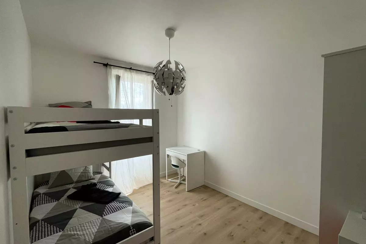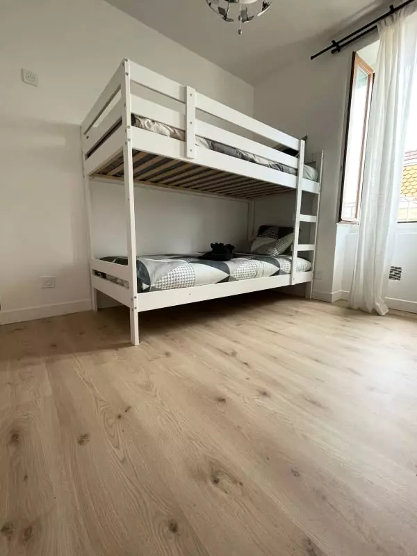 - trois chambres avec un lit double, un lit superposé et deux lits simples ;