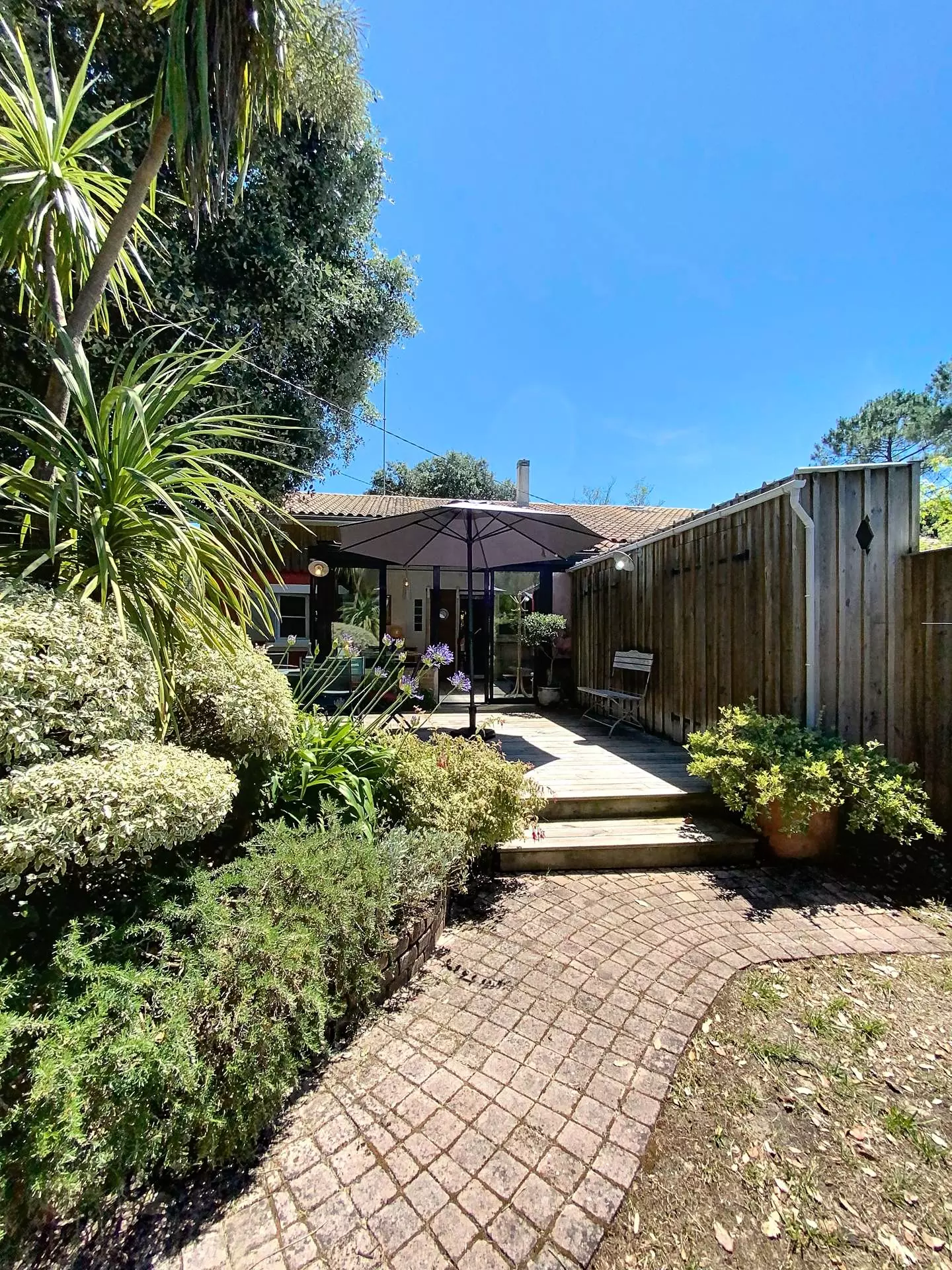 Dans un environnement calme et privilégié avec accès direct aux plages ombragées du lac, vous apprécierez cette charmante villa à la décoration soignée pour 6 personnes avec son grand terrain paysagé. La salle à manger ouvre par de larges baies vitrées sur la terrasse en bois avec mobilier de jardin. Le salon télé ouvre sur une petite terrasse privative sans vis à vis. La cuisine spacieuse et traversante est entièrement rénovée. Il y a deux chambres, une avec un lit double (160cm) et une avec deux lits simples. La mezzanine dispose d'un lit double en 140 cm. Une salle d'eau. Des WC séparés. Les animaux sont bienvenus. Vous pourrez garer votre voiture sur le terrain. Les plages du lac sont à 100 m. L'océan et les commerces sont à 10 km. Le golf est à 6 km - REF 02345M - Chèques vacances acceptés