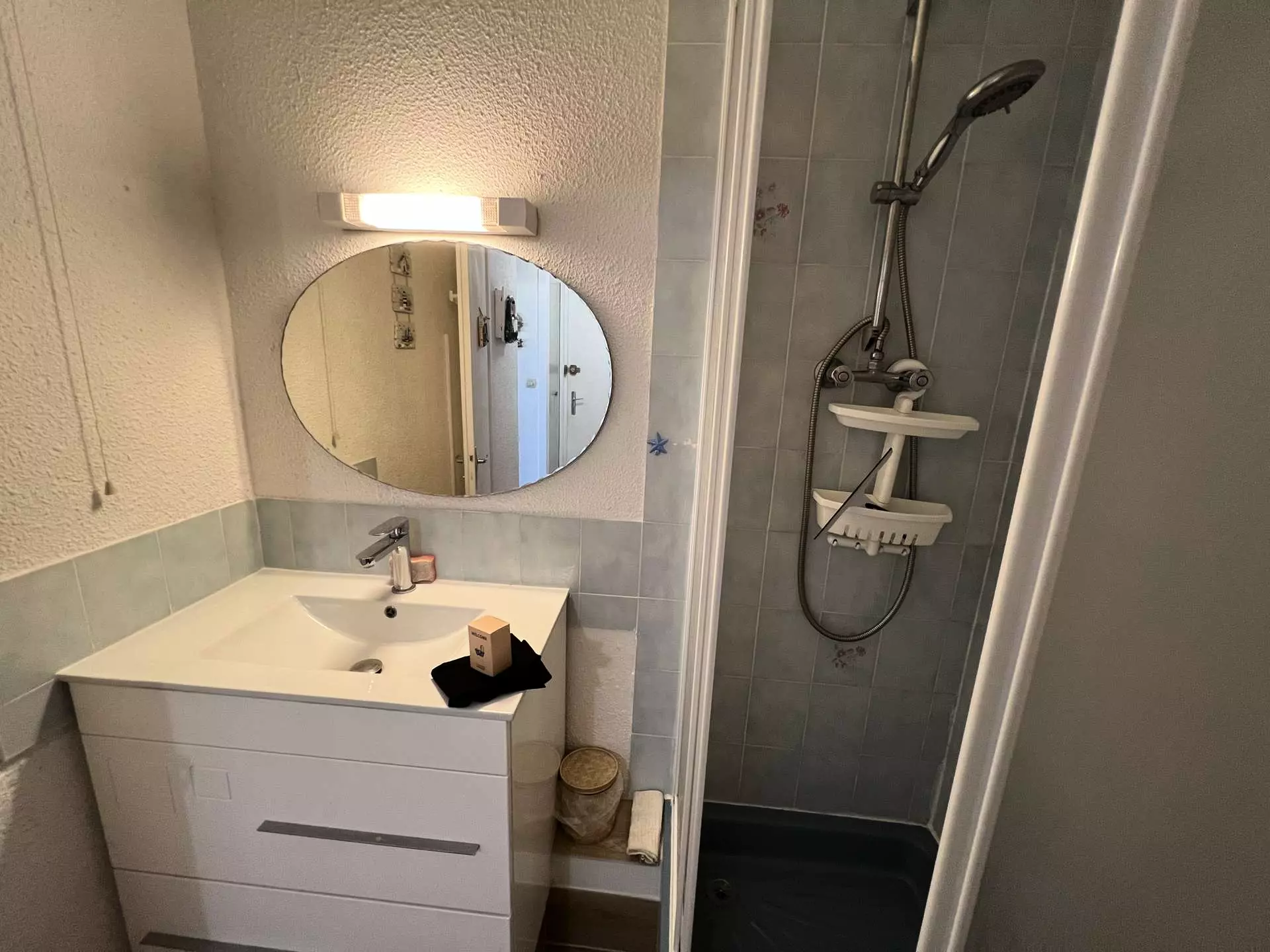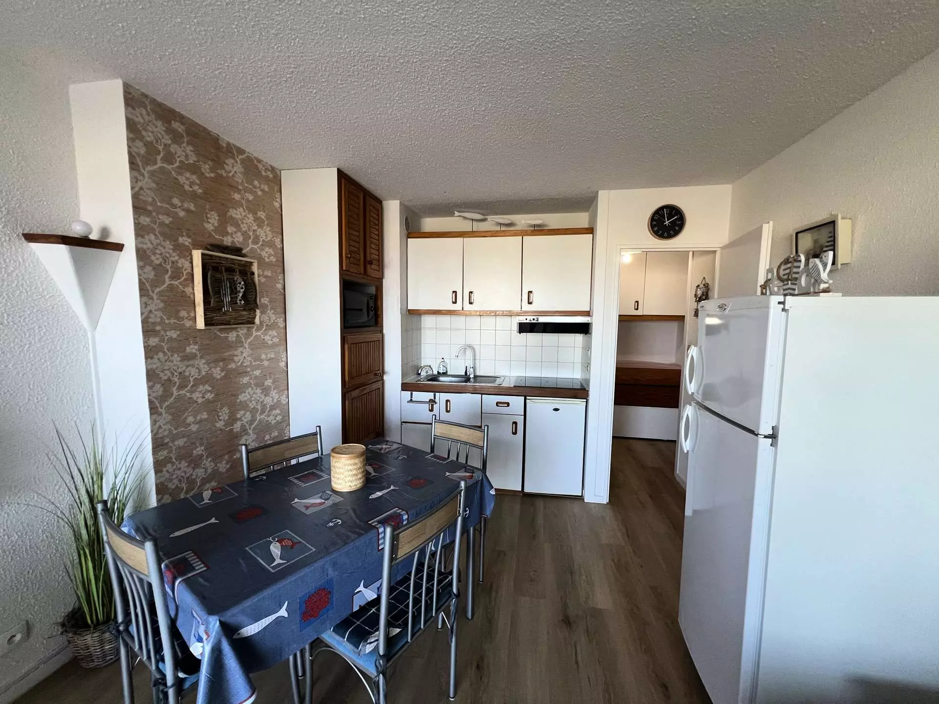 Appartement très bien situé au 2ème étage d'une résidence en front de mer avec ascenseur avec sa très belle vue sur l'océan. Il est composé d'une entrée faisant office de chambre avec 2 lits simples superposés, une salle d'eau avec WC, un coin cuisine équipé ouvert sur un espace à vivre avec canapé clic-clac de 120 cm donnant sur la terrasse avec vue mer. Place de parking. 5 minutes à pied du centre ville. POINTS FORTS : Vue mer, accès plage et centre ville à pied, place de parking. Caution à régler sur place. Chèques vacances acceptés.