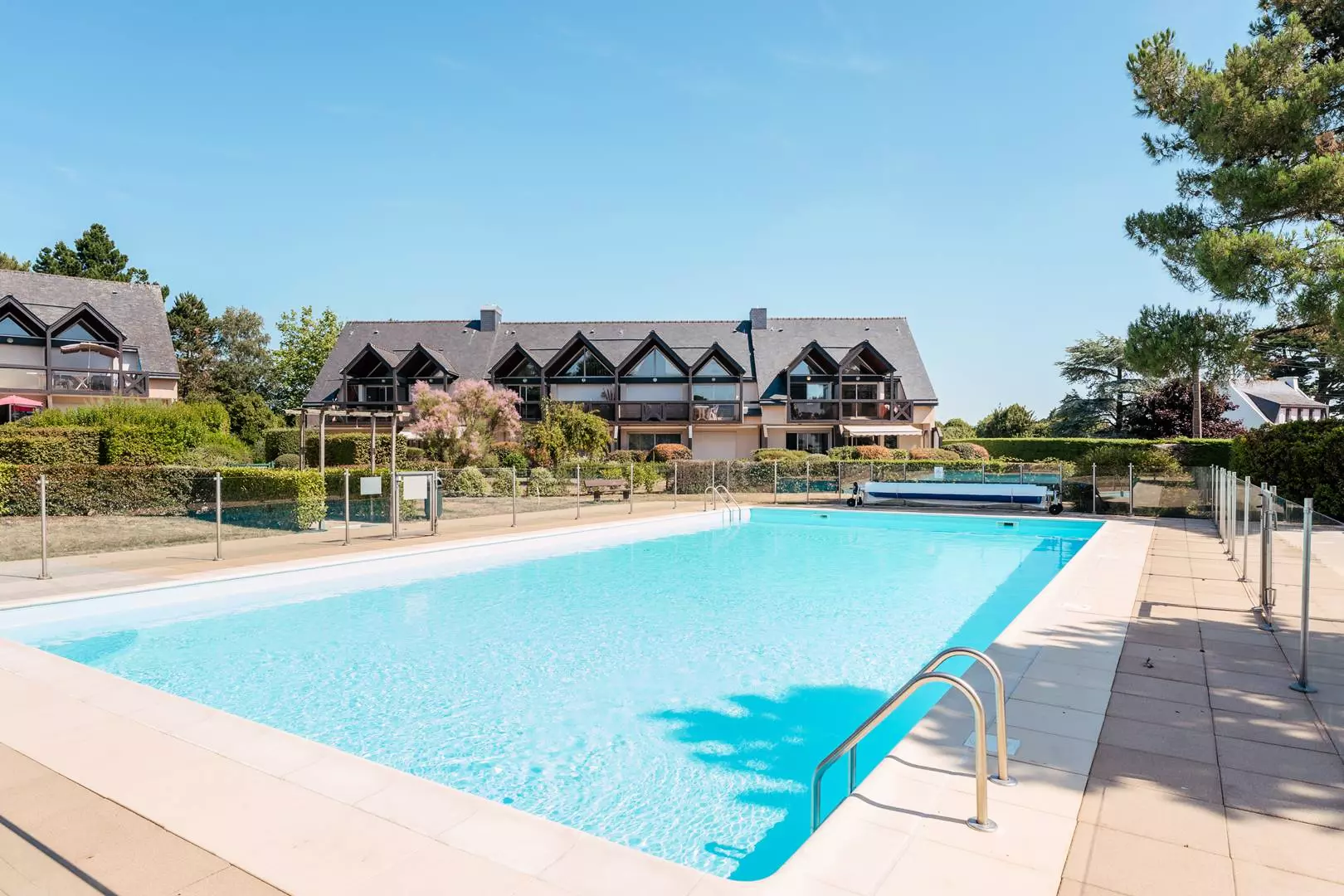 À 500m de la Grande Plage de Carnac et à proximité des commerces, maison 3 pièces (env.55m²) pour 6 personnes, située au calme dans la Résidence LES MAISONS DU PARC (maison n°3). Piscine collective chauffée ouverte de mi-juin à mi-septembre :