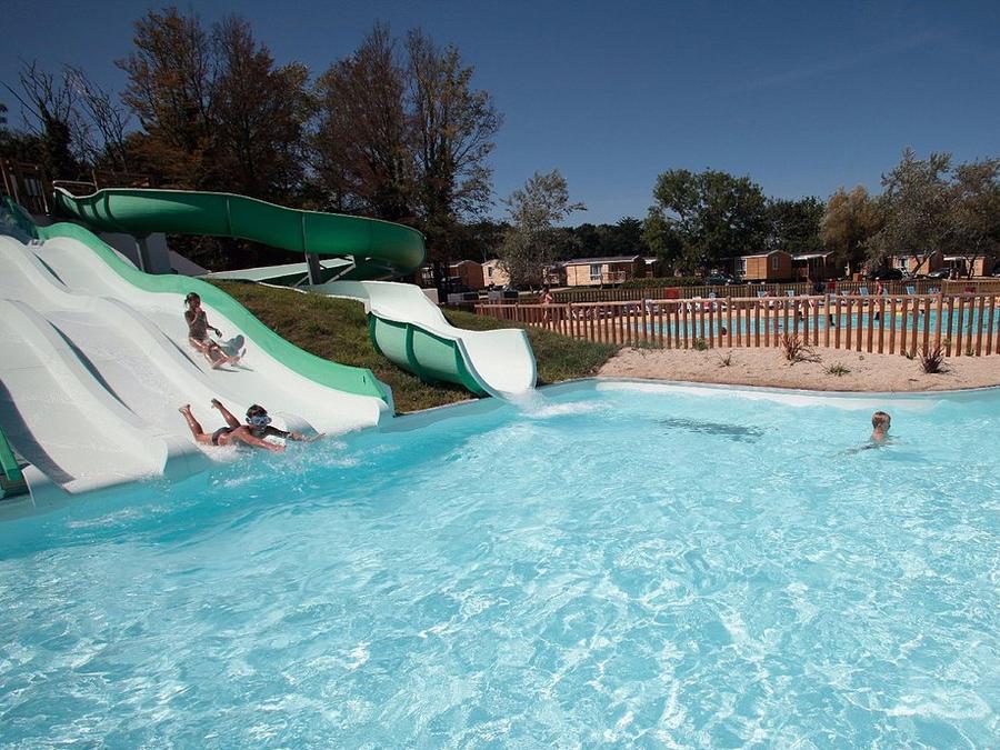 Infos supplémentaires sur l'espace aquatique : Le camping dispose de deux piscines extérieure chauffées, dont une avec pataugeoire et jeux d'eau. Des toboggans aquatiques sont également disponibles sur place. Shorts et bermudas interdits.