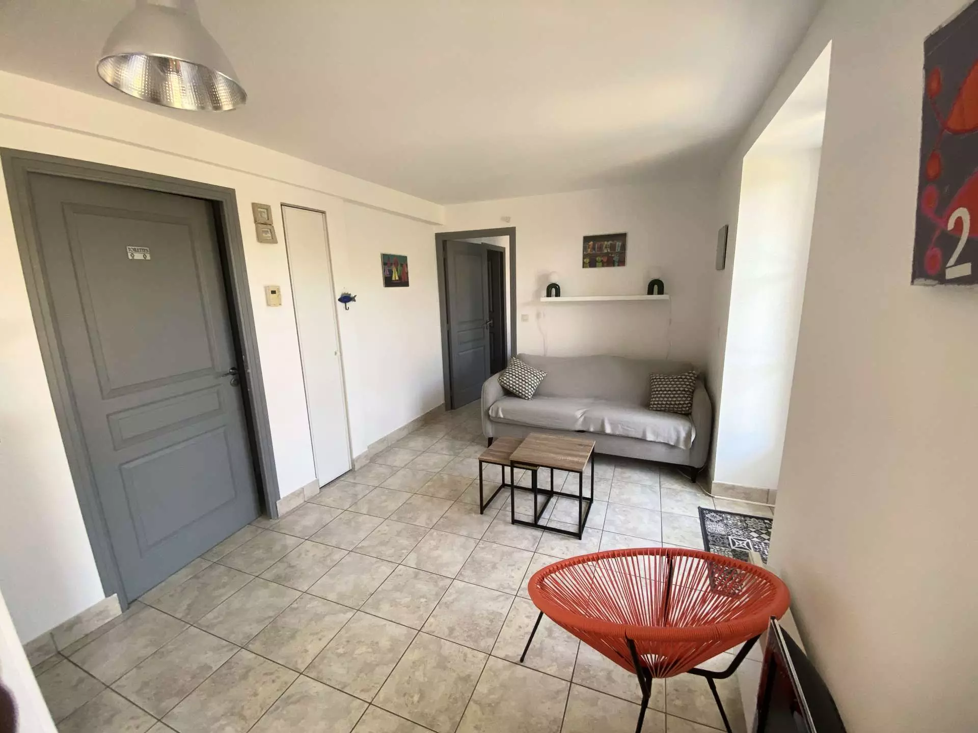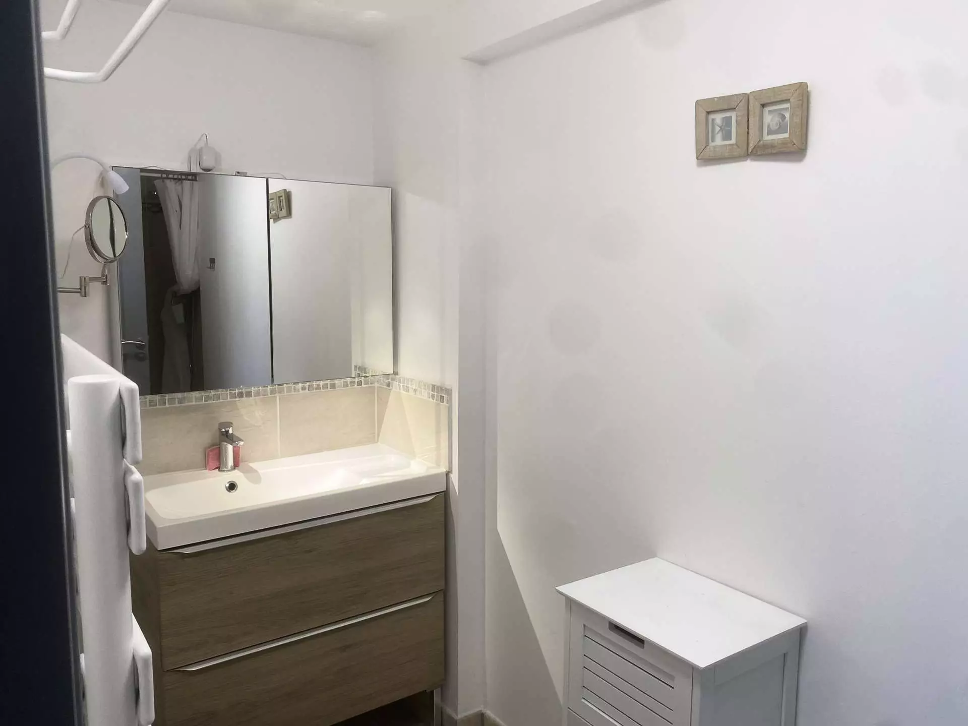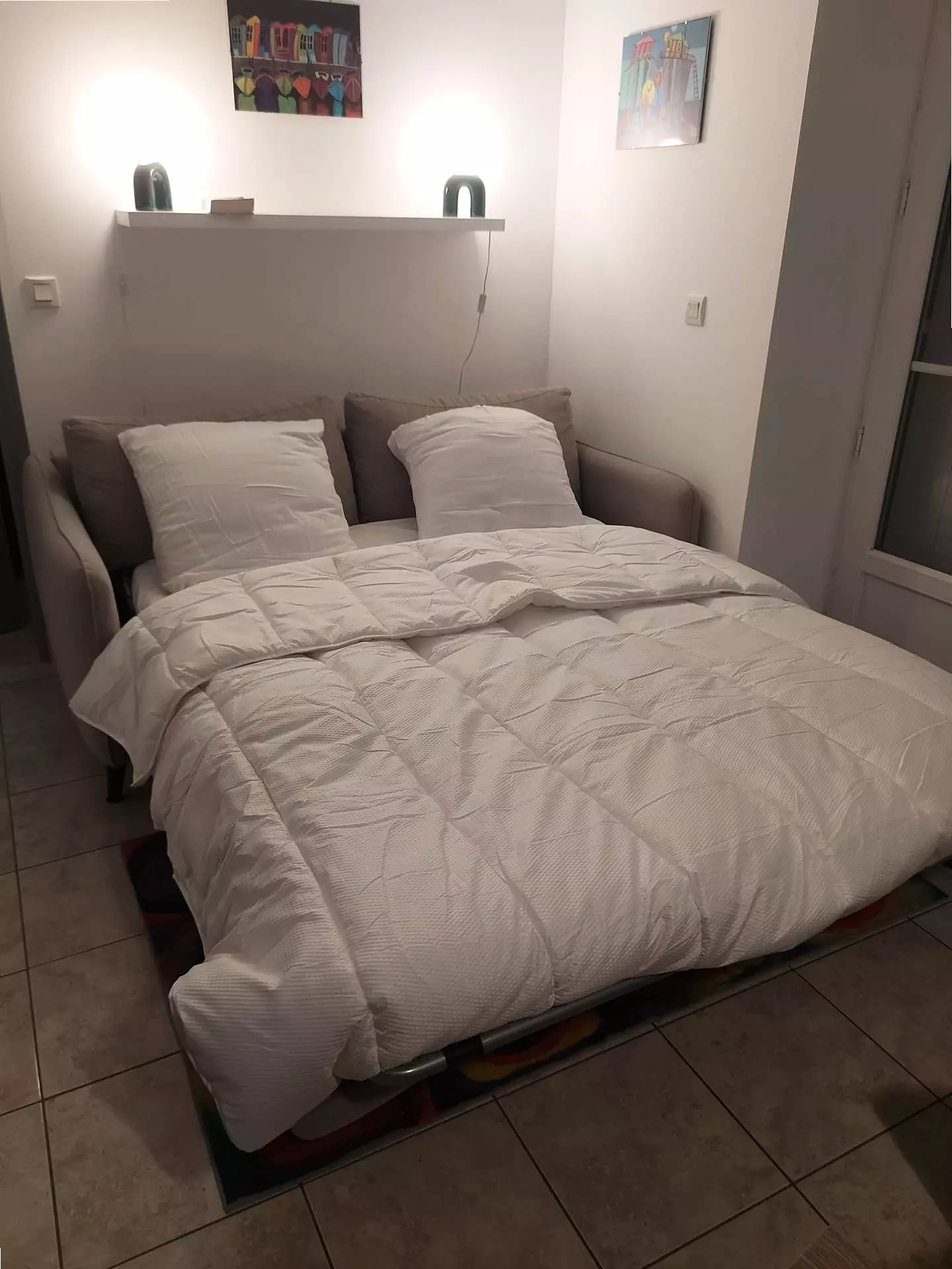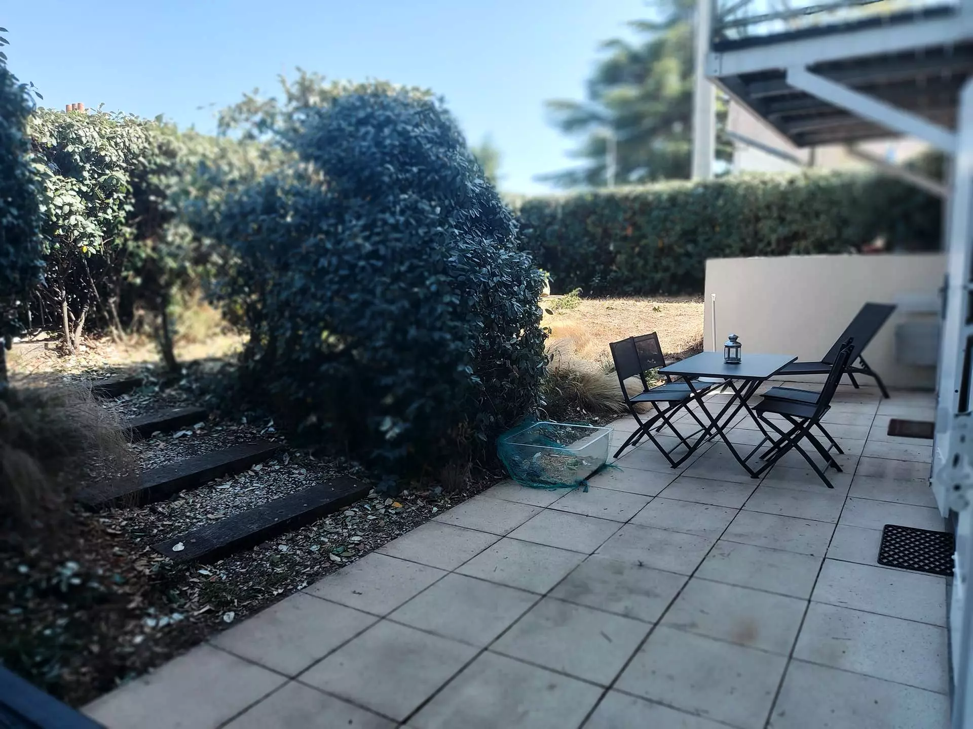 Au rez-de-chaussée d'une agréable résidence, cet appartement d'une surface d'environ 36 m2, en bon état, propose une pièce principale avec un canapé convertible, un coin cuisine avec lave-linge et lave-vaisselle, une chambre donnant sur la terrasse avec un lit double (140), et un WC.