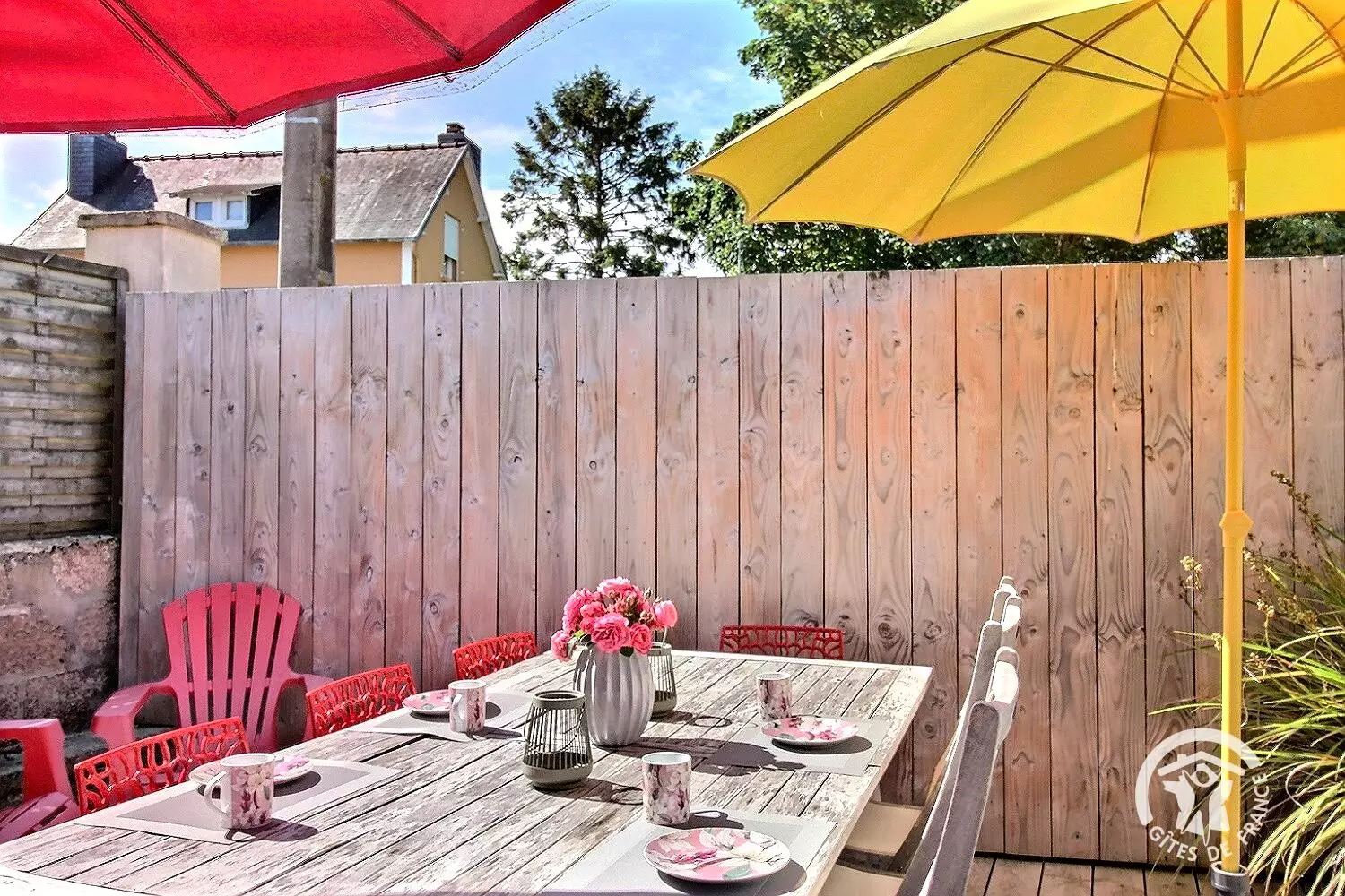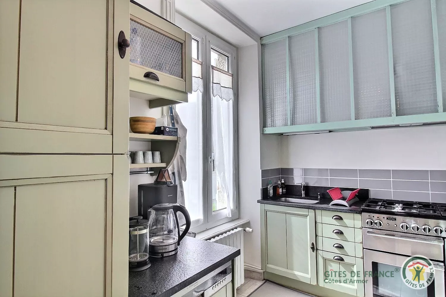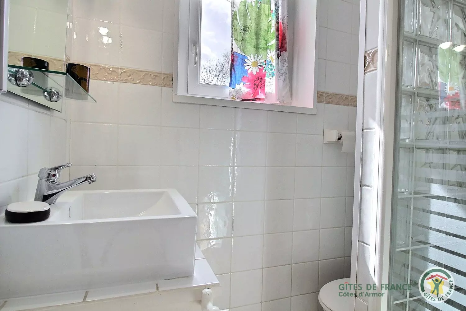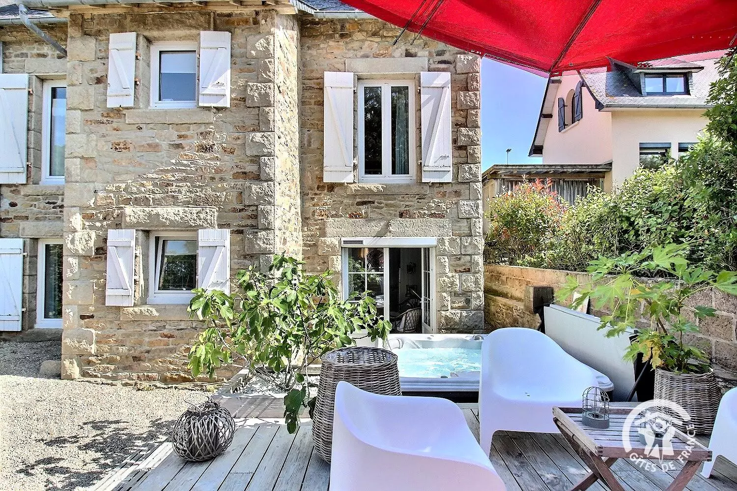 Cour gravillonnée pouvant accueillir 2 voitures. Possibilité de stationner dans la rue et sur un petit parking public juste à côté. Lave-linge dans cellier extérieur. En baie de Lannion, dans la station de Plestin Les Grèves, en bordure de la D786 conduisant à Lannion (15km) et Morlaix (23 km), la Villa la Lieue de Grève sera l'adresse rêvée pour des vacances à la mer : vous n'aurez que la route à traverser et à vous les plaisirs de la plage... Si vous souhaitez des vacances toniques et sportives, vous pourrez vous rendre au centre nautique juste en face de la maison. Mais ce que vous apprécierez avant tout, c'est de vous retrouver dans un intérieur chaleureux où se conjuguent subtilement parquets anciens et décoration tendance. Le plus de cette villa ? ses grands volumes, ses 2 séjours salon permettant si besoin de s'isoler, la grande terrasse exposée plein sud. A 3.5 km du centre de Plestin les Grèves (tous commerces).