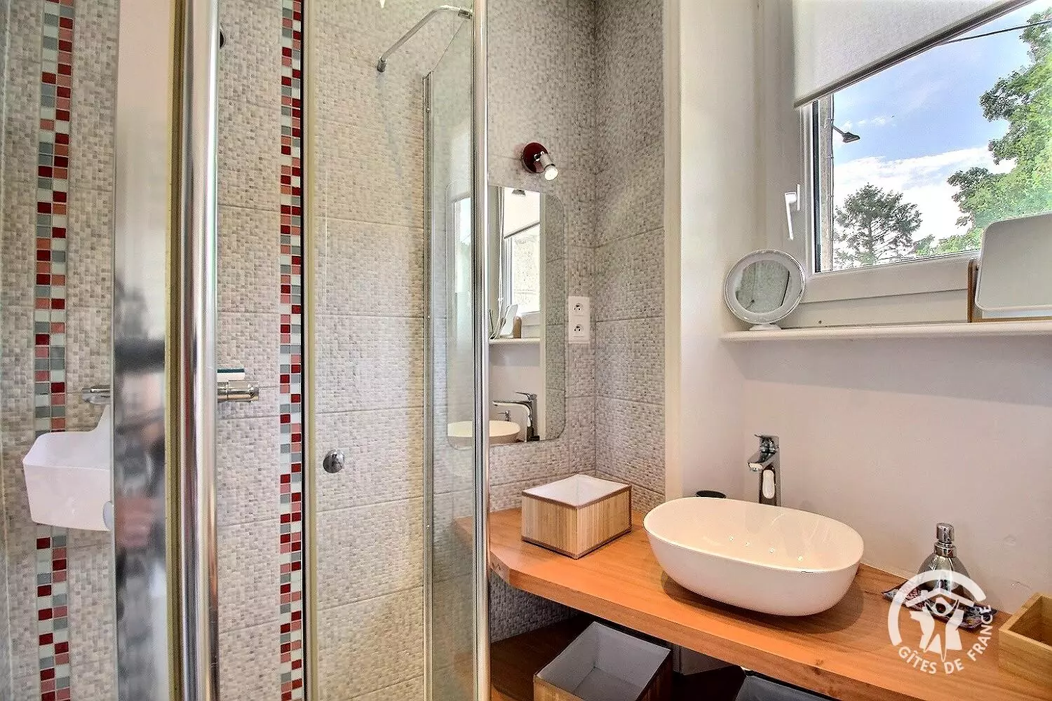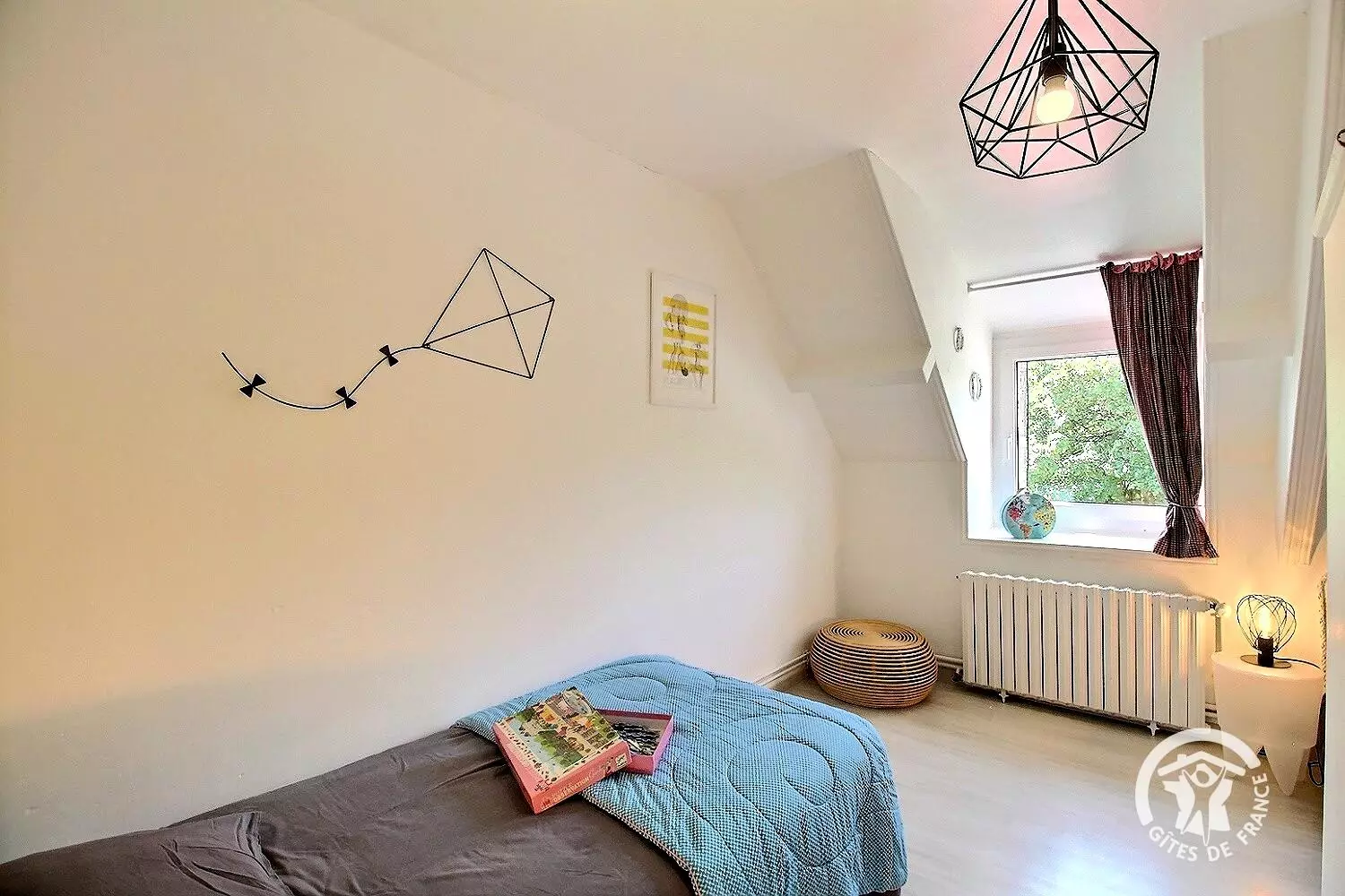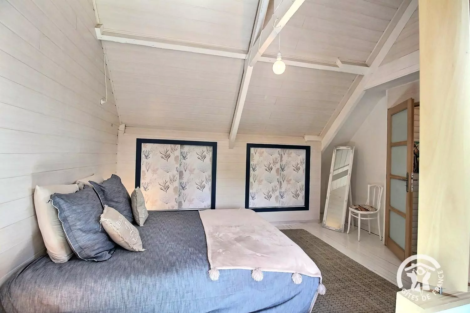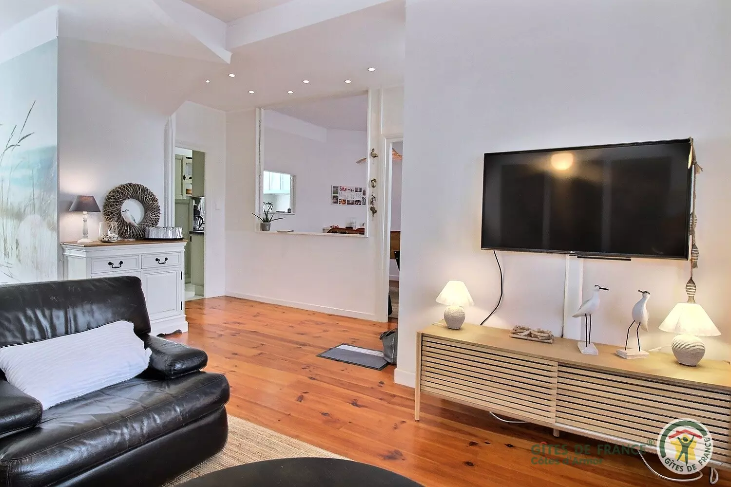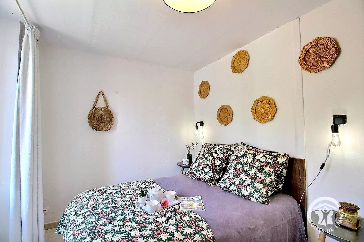 En rez de jardin, accessible par entrée extérieure , un appartement pour 4 personnes comprenant sur un même niveau, un espace séjour salon petite cuisine aménagée bien équipée (cafetière nespresso) 2 chambres (1 lit 140x190) (2 lits 90x190), petite salle d'eau (douche et wc).
