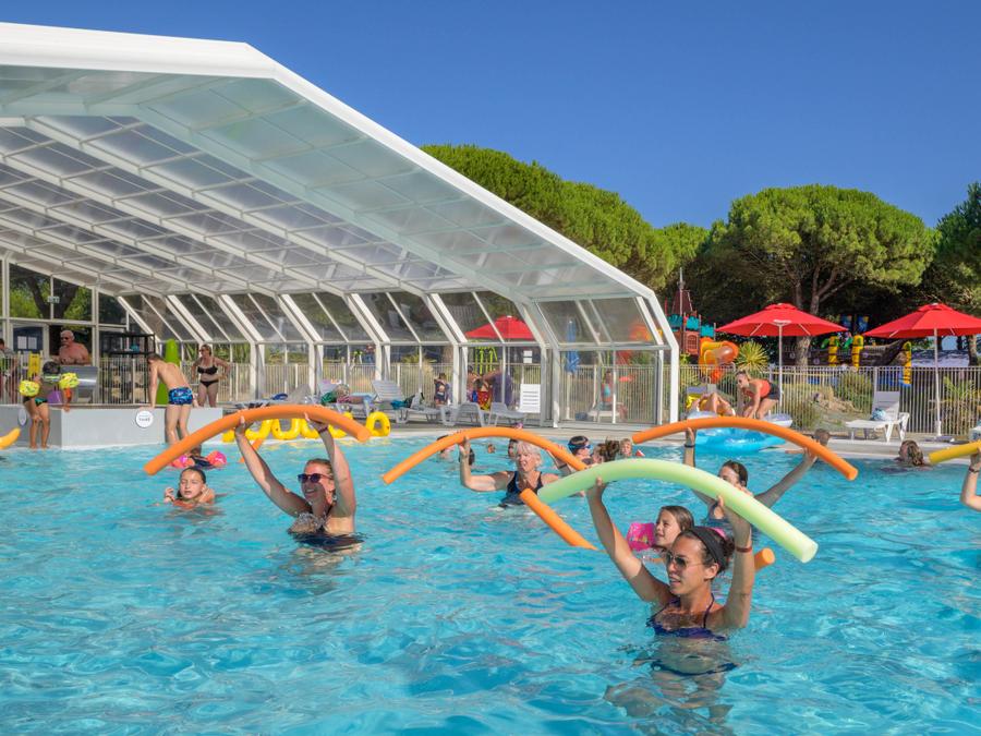 Infos supplémentaires sur l'espace aquatique : Sur place, profitez de la piscine extérieure couverte et chauffée avec pataugeoire. Aux abords du bassin, vous pouvez vous prélasser sur les transats protégés par des parasols.