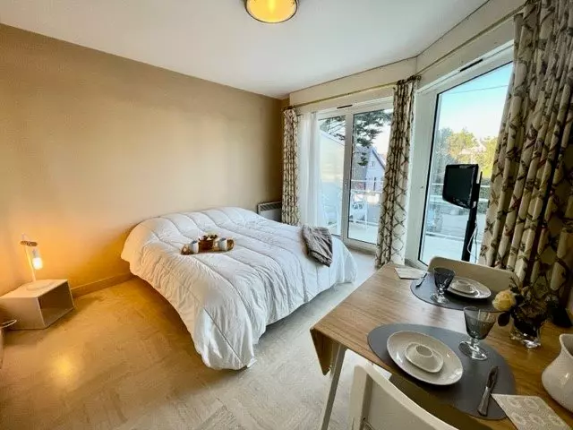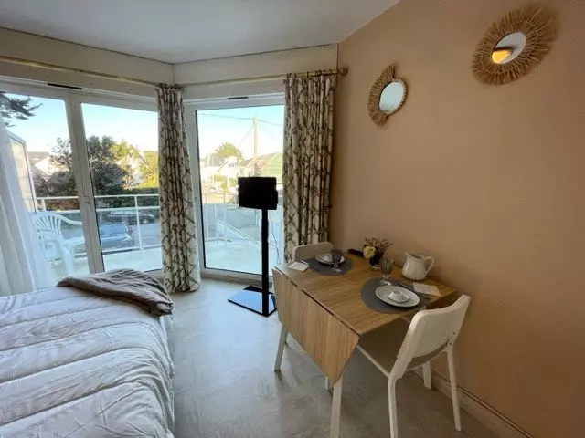 Charmant studio pour 2 personnes d'environ 20m² situé au 2ème étage avec ascenseur de la résidence Gulf Stream. Accès direct à la grande plage de Quiberon.