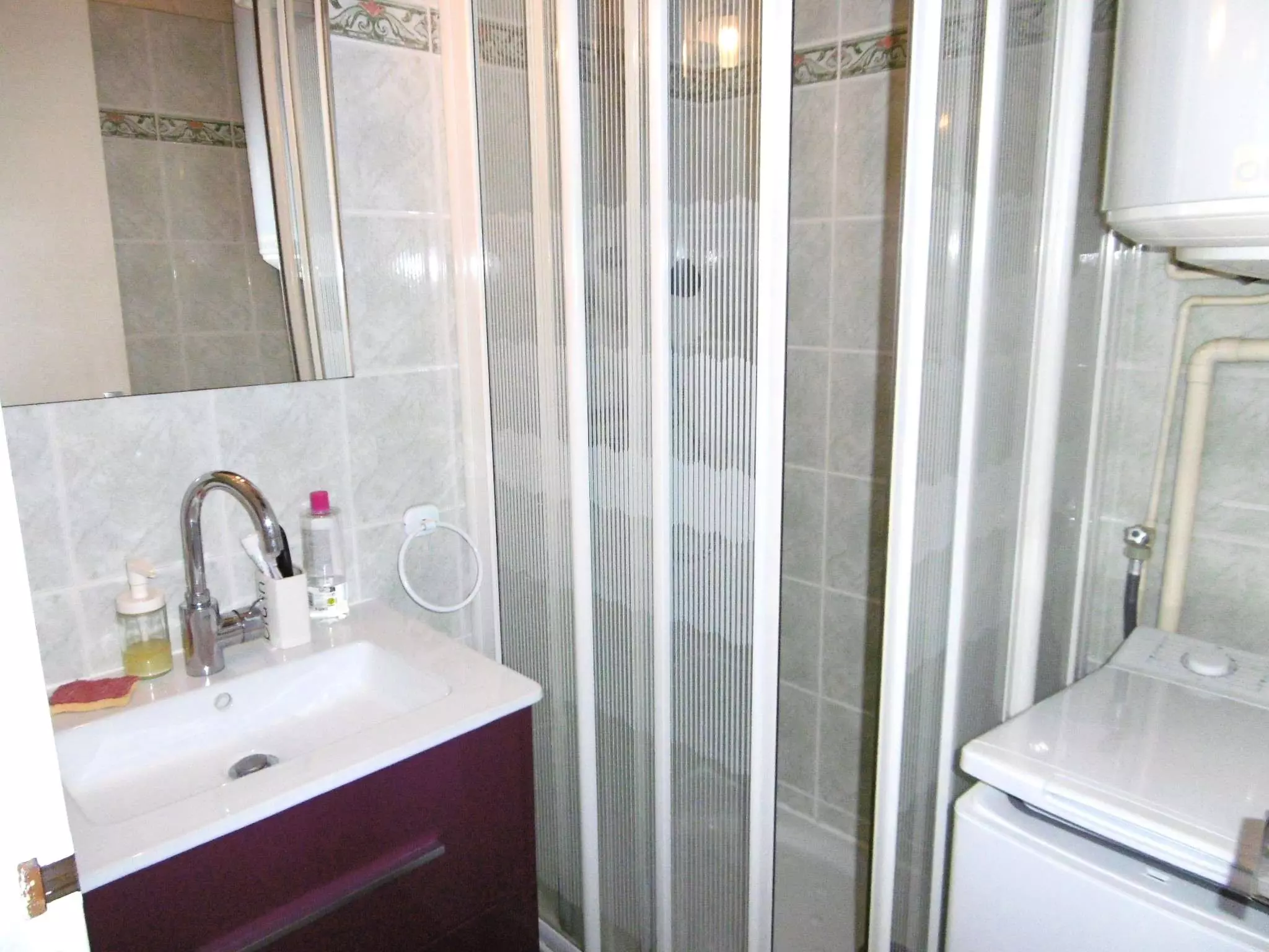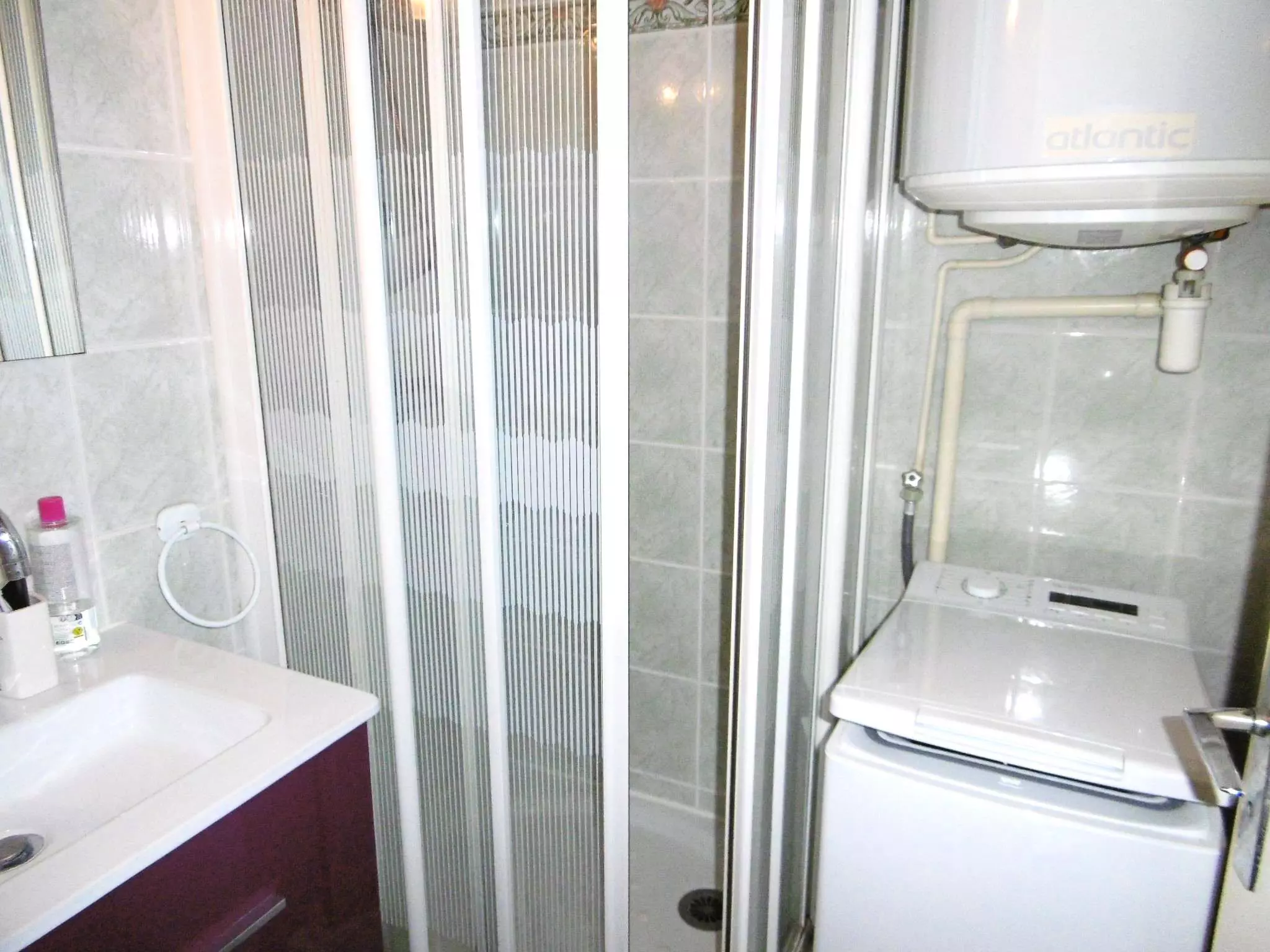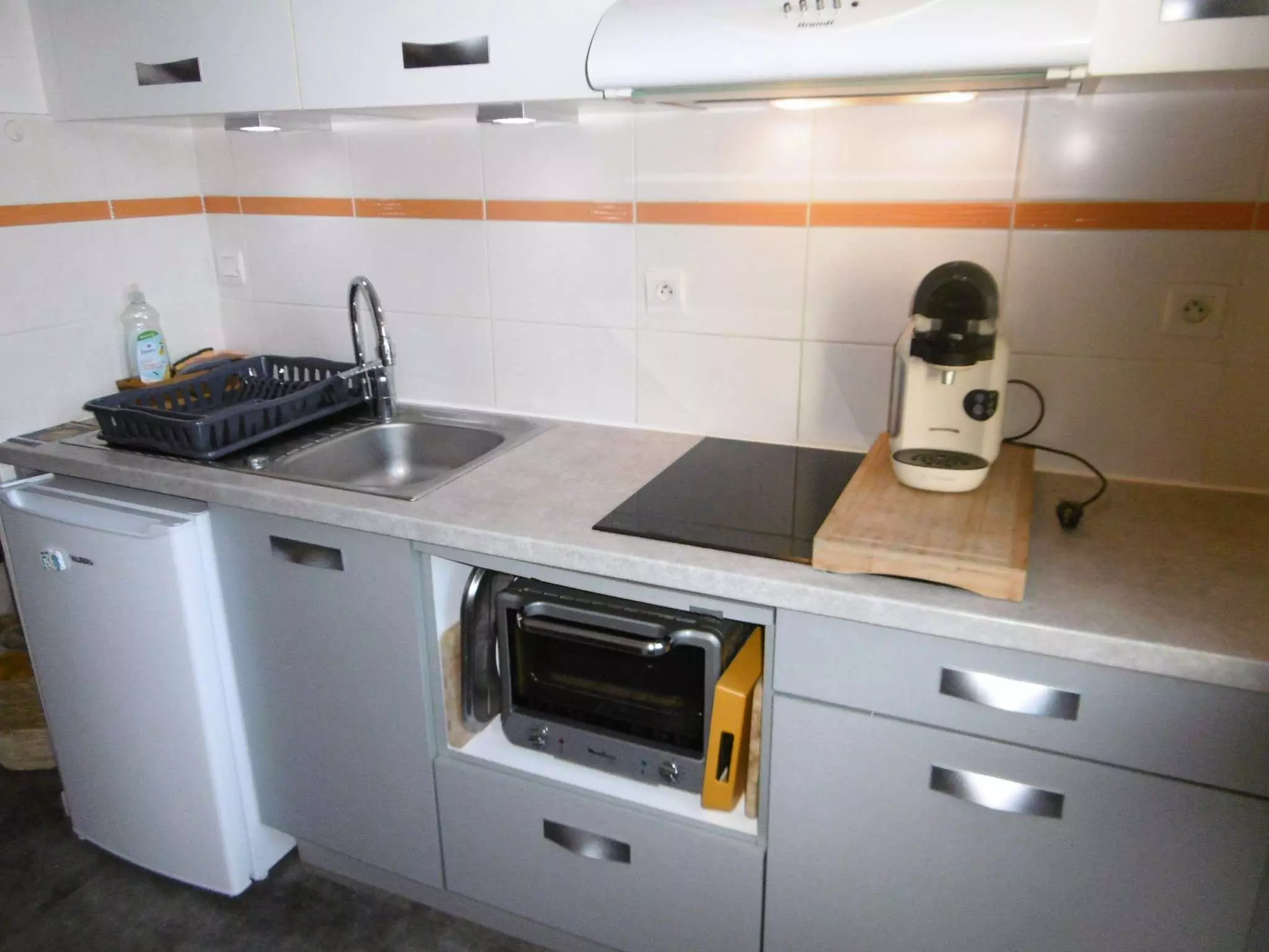 Equipement : réfrigérateur, four électrique, 3 plaques à induction, lave-linge, cafetière, grille-pain, TV.