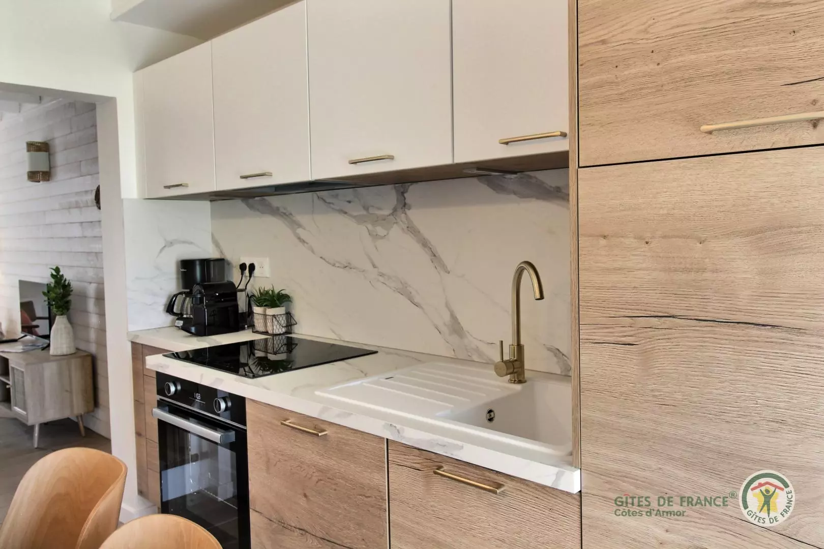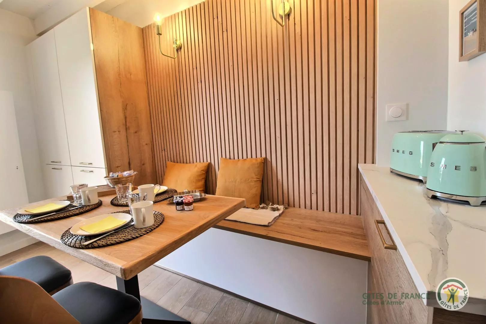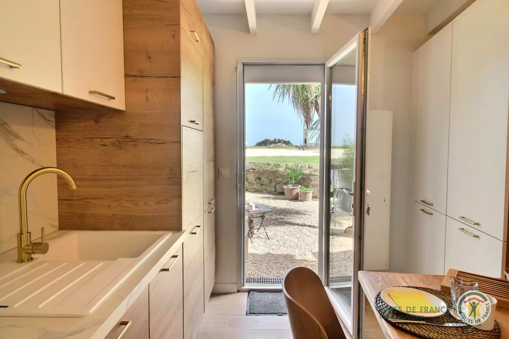 Votre location de vacances comprend au rez de chaussée une cuisine (bien aménagée) séjour salon traversant d'un côté vue mer et de l'autre côté vue cour. A l'étage 1 chambre (1 lit de 140x190) vue mer, 1 chambre (1 lit de 80x200), salle d'eau avec wc. Jardin vue mer et terrasse côté cour. Stationnement privé à l'arrière ; stationnement possible devant côté mer. Appartement aménagé avec goût dans un ancien hôtel avec un rez de jardin vue mer, idéal pour un couple avec un enfant. Immeuble mitoyen avec d'autres locations saisonnières. Vous recherchez un nid douillet pour vos prochaines vacances avec vue sur une des plus belles plages de Trégastel - Tourony : Ty Tourony vous attend avec une vue imprenable sur le château de Costaeres ! Cette situation privilégiée au cœur de la Côte de Granit Rose vous séduira par ses nombreuses activités sur place ou à quelques mètres : baignade, randonnée sur le GR34 qui est à 20 m, paddle & kayak vous sont proposés à 500 m sur la plage de Quo Vadis, vélo, tennis, skate park à 700 m... à moins que vous préfériez profiter du jardin vue mer en bouquinant. A Trégastel vous pourrez flâner sur le marché le lundi un des plus grands du département l'été, vous baignez au forum de la mer (complexe aquatique d'eau de mer chauffée à 30°), et profitez des paysages à couper le souffle le long du sentier des douaniers. La station de Perros Guirec est à 4 km (ses plages, son port, son casino et sa thalasso), Lannion à 13 km - ville d'art et d'histoire