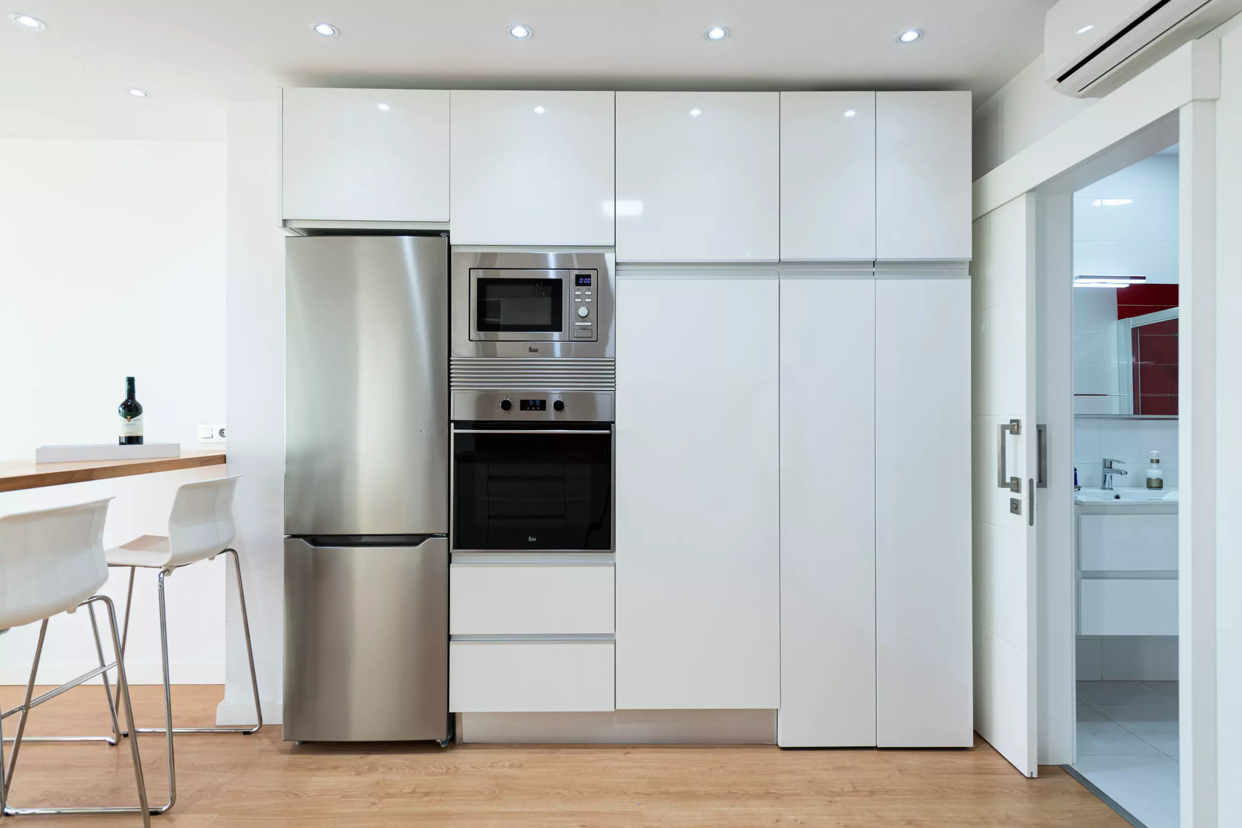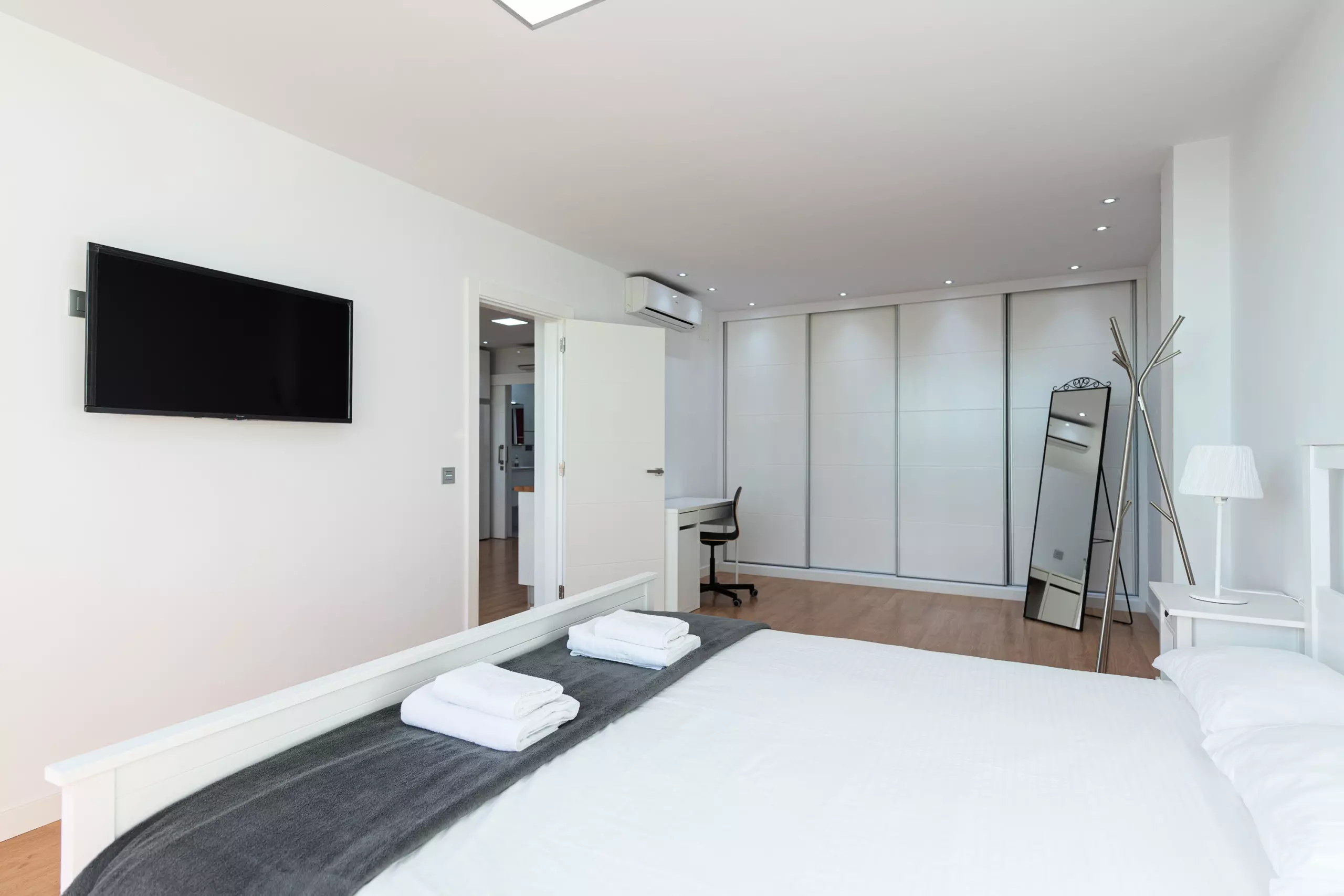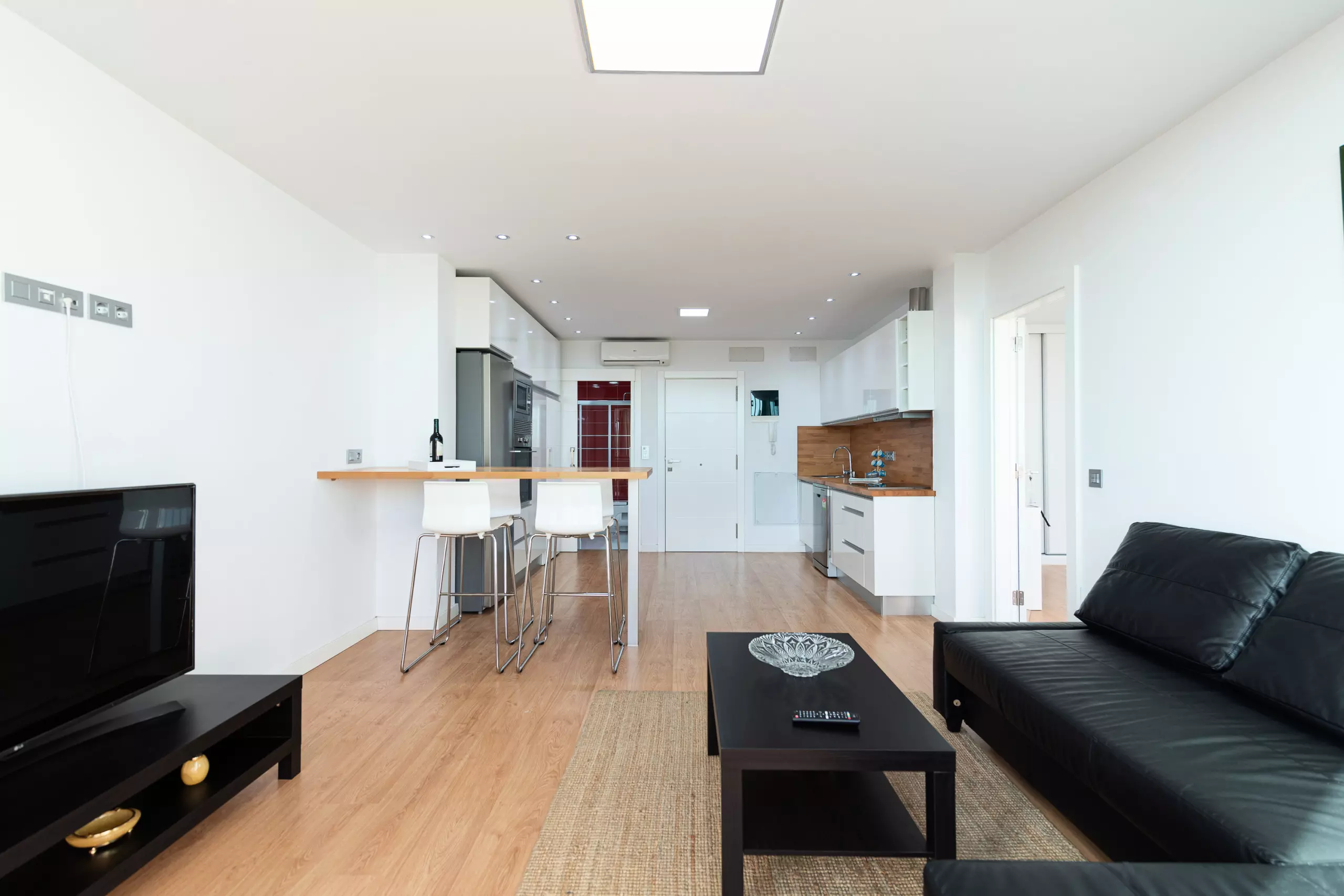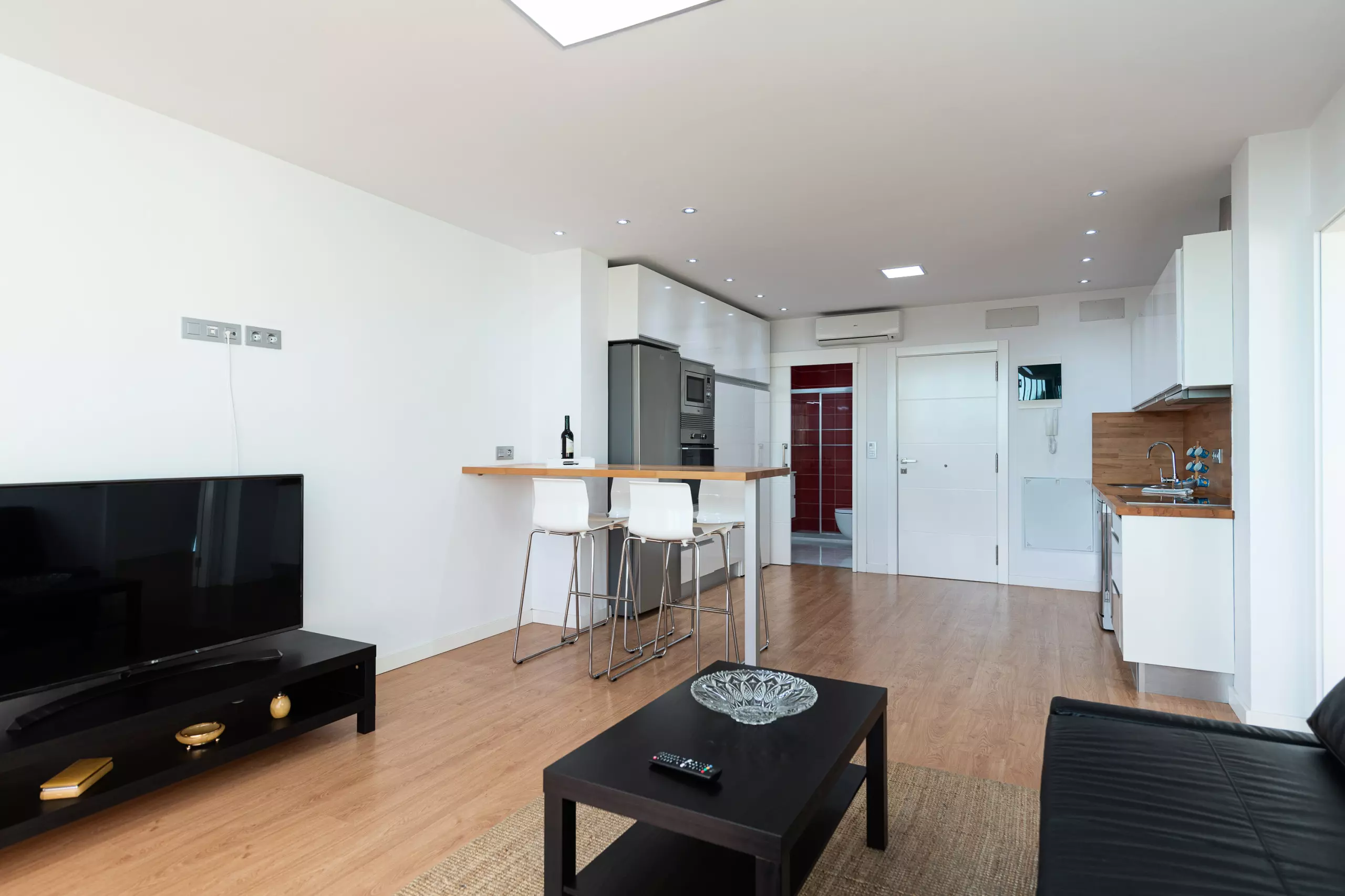 Kitchenette avec plaque vitrocéramique, réfrigérateur, micro-ondes, four, congélateur, lave-linge, sèche-linge, lave-vaisselle, vaisselle, couverts, ustensiles de cuisine, cafetière, grille-pain, bouilloire et presse-agrumes. Il dispose également d'un ascenseur, d'un fer à repasser, d'une connexion Wi-Fi, d'une télévision et de la climatisation.