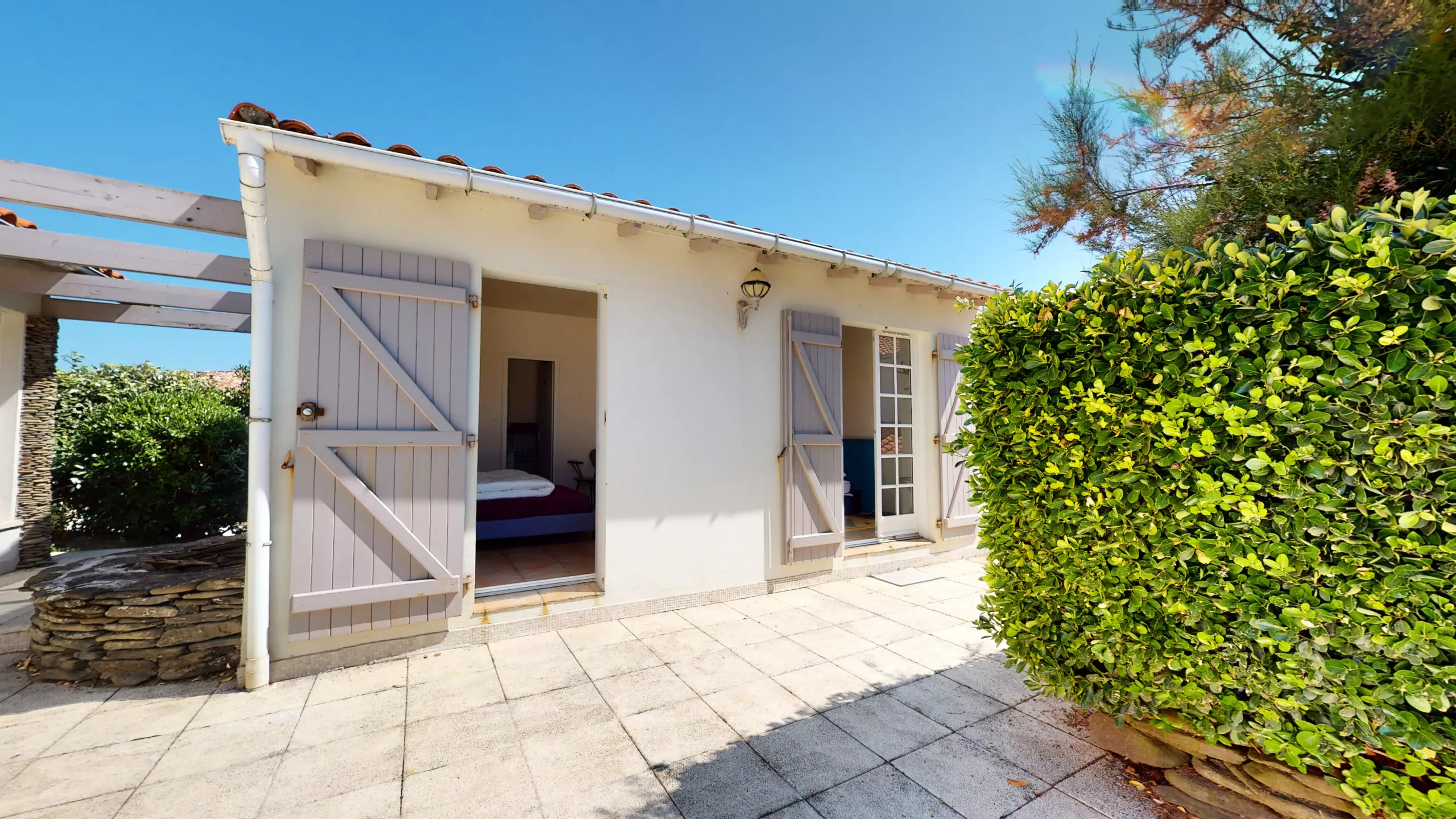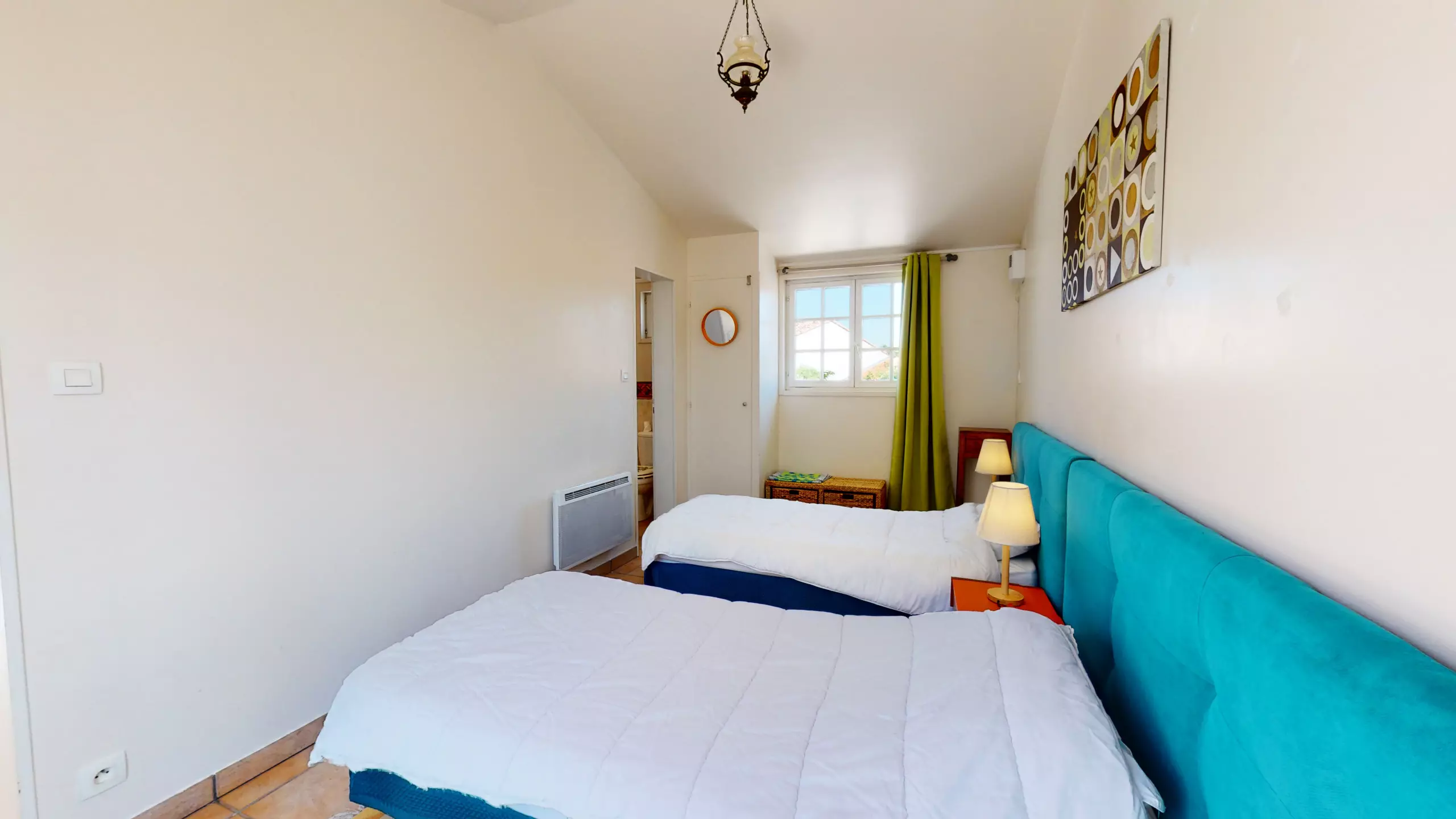 La deuxième habitation de la Villa des Vagues comprend une chambre avec lit double, une chambre avec deux lits simples, ainsi qu'une salle d'eau et des toilettes séparées. Pour des moments de détente absolue, une pièce spéciale abrite un bains à remous où vous pourrez vous relaxer et vous ressourcer après une journée bien remplie à la plage.