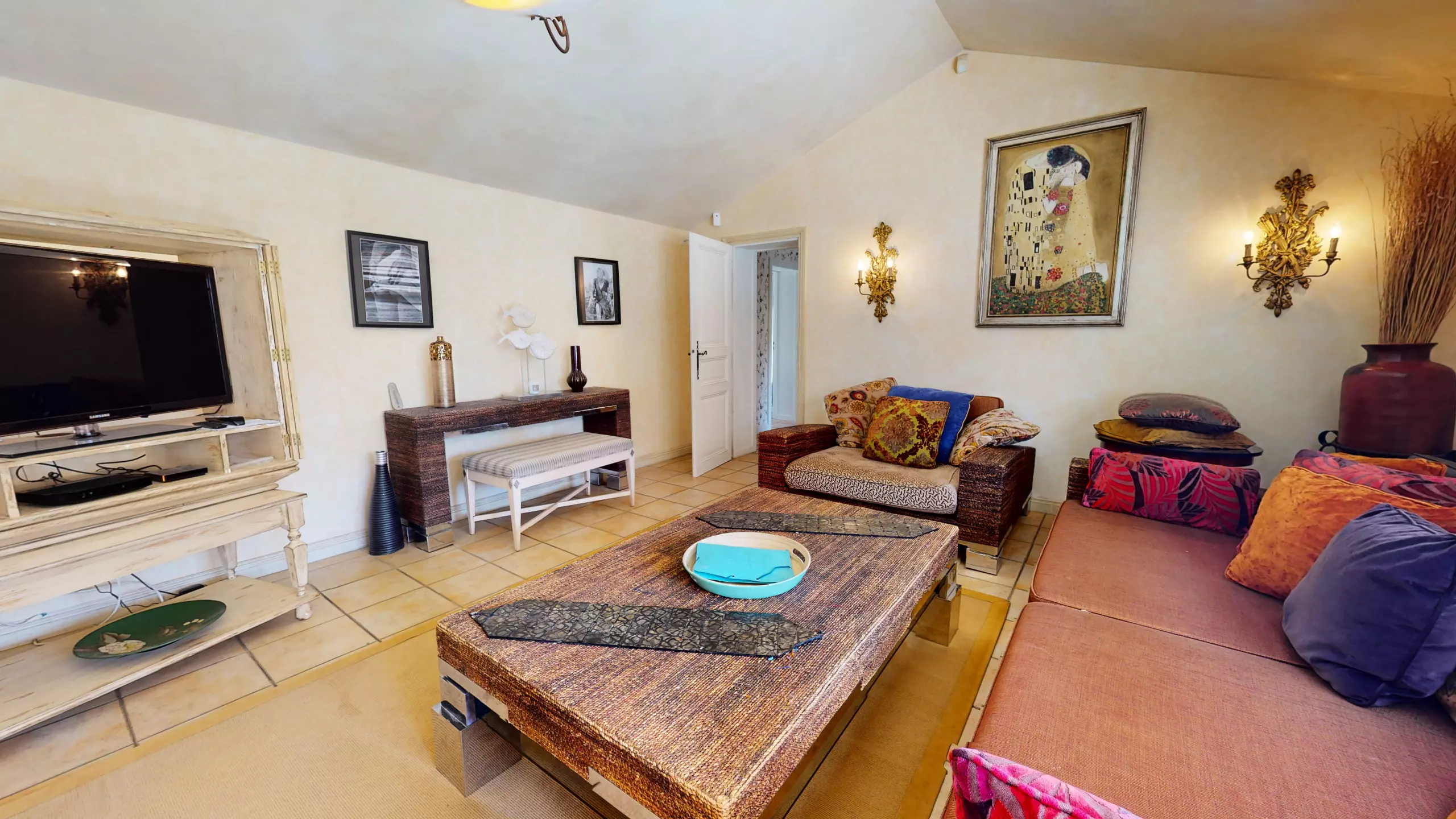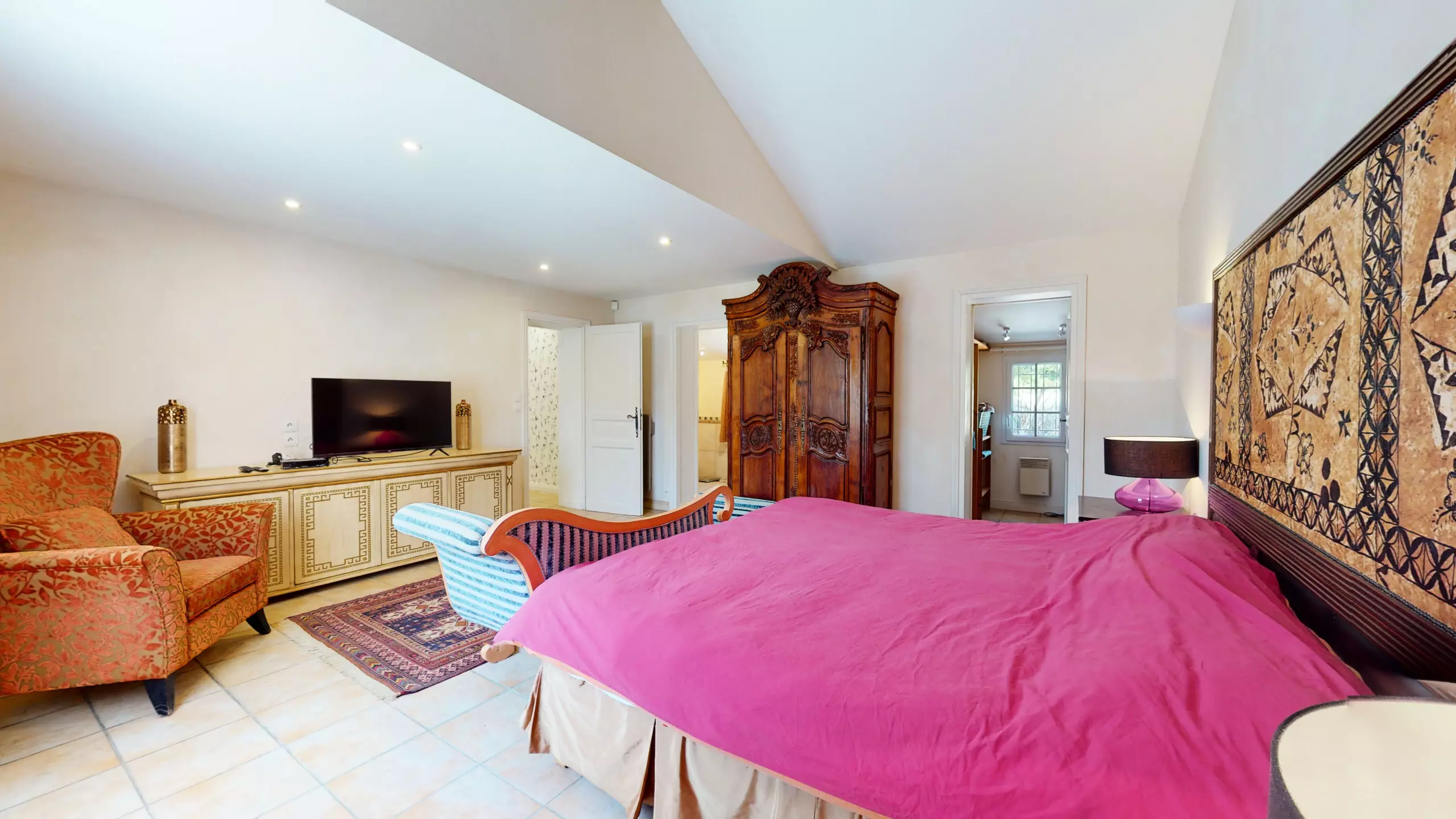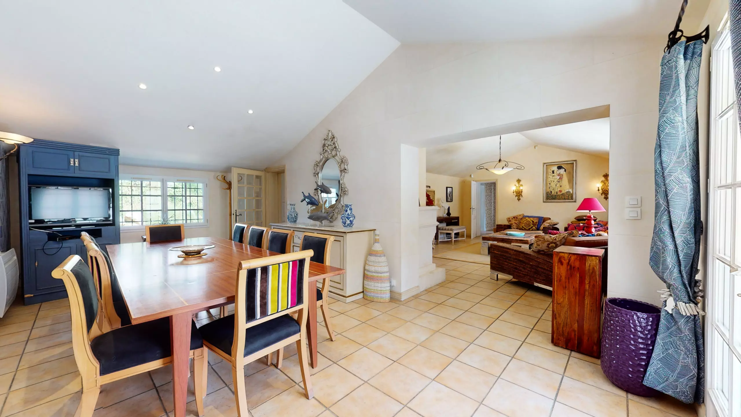 La pièce de vie spacieuse de 50 mètres carrés comprend une grande salle à manger, parfaite pour des repas conviviaux en famille ou entre amis. Une chambre avec lit double et une salle d'eau sont également disponibles dans cette première habitation. Pour votre plus grand confort, vous trouverez également une somptueuse chambre avec lit king-size, dressing et salle de bain privée.