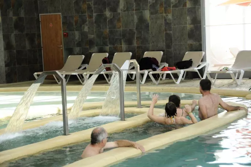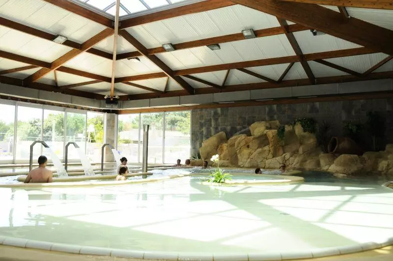- Espace aquatique couvert et chauffé avec pataugeoire, rivière à contre-courant, banquettes anatomiques, geyser et canons d'eau et bassin d'hydrothérapie réservé aux adultes