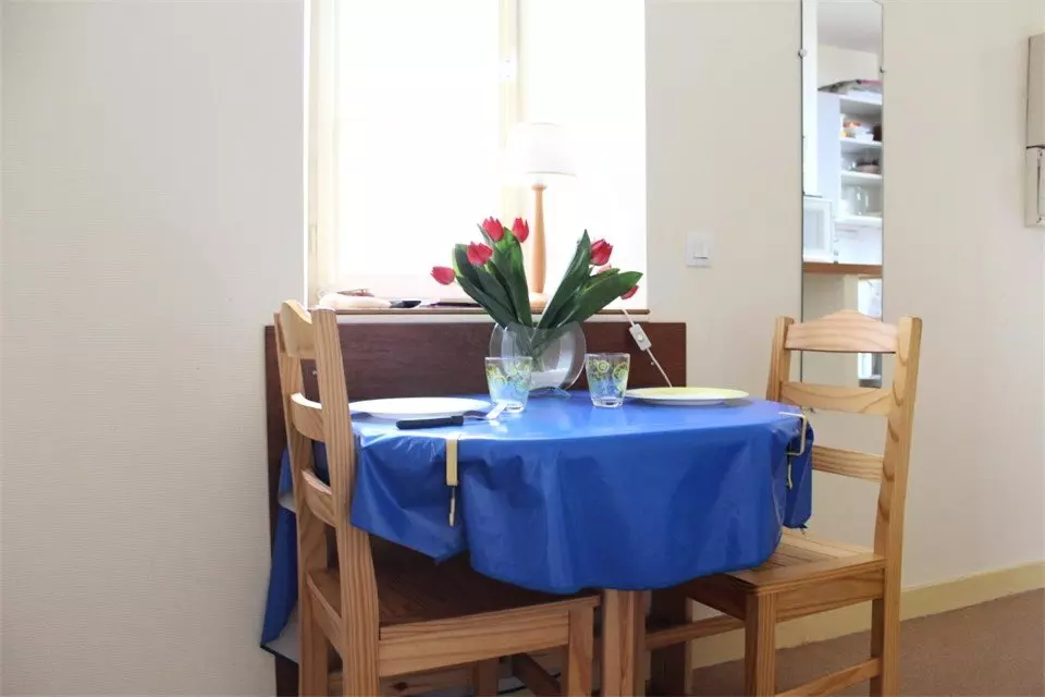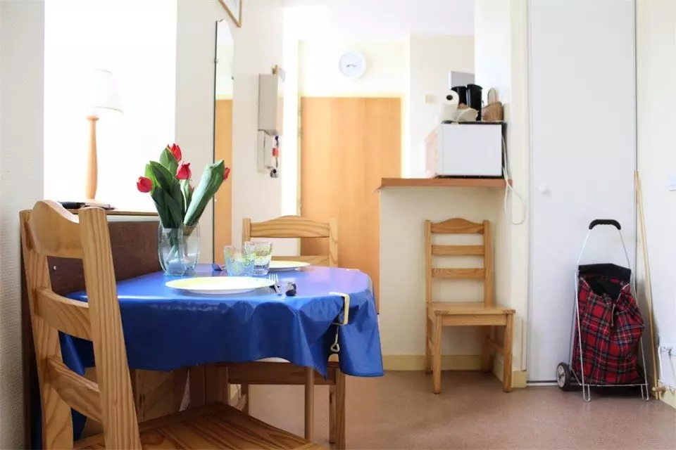 Il est au deuxième étage et se compose d'une kitchenette équipée, d'un séjour avec deux lits simples (neufs de 2024), une salle d'eau et un WC. Une place de stationnement privé à disposition en ville à 5 min à pied de l'appartement en sous sol.