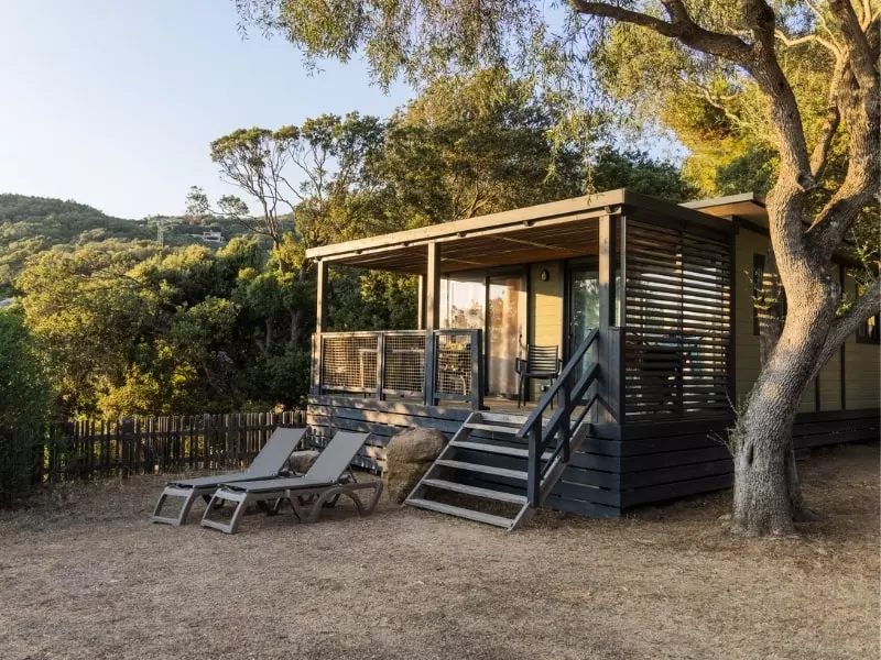 Ce Camping Corse vous offre des chalets tout récents ainsi que des emplacements nus.