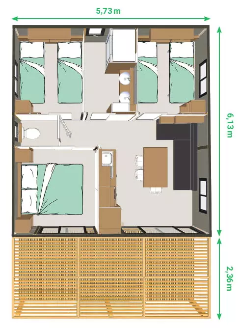 Chalet PERSIA 35m² / 3 chambres - terrasse 10m² 6 personnes