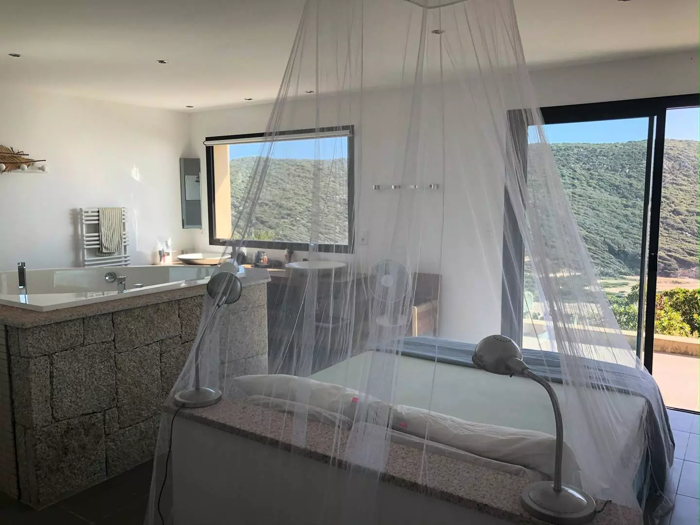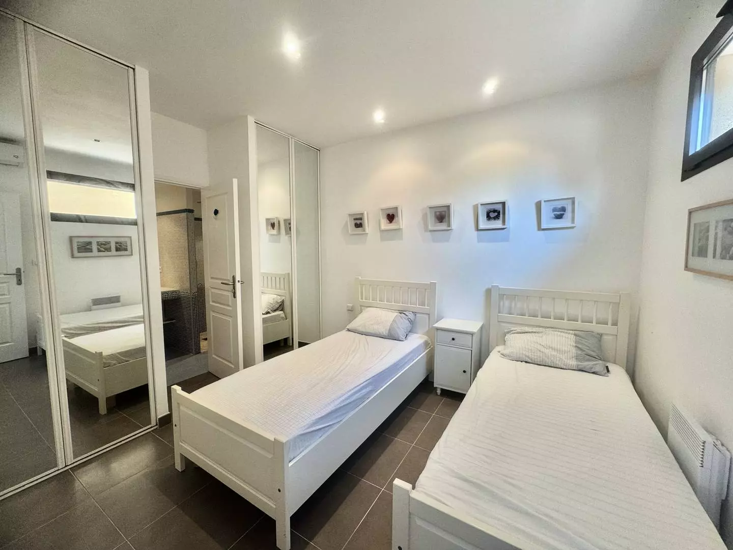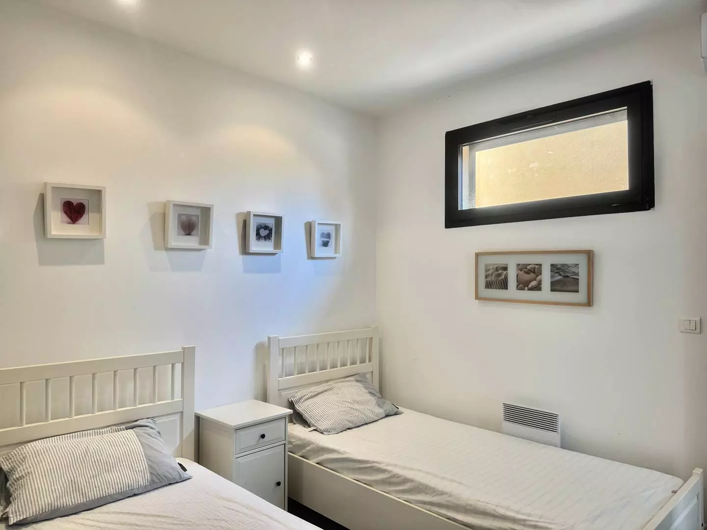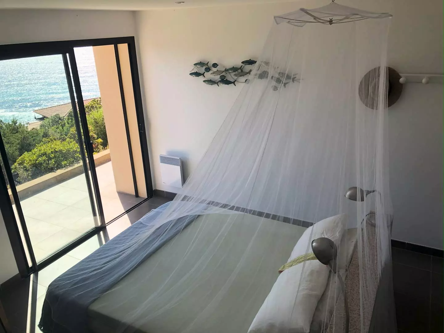 Le rez-de-villa comprend trois chambres avec lit double chacune avec accès direct à la terrasse et vue sur la mer ainsi qu'une douche extérieure idéale pour les retours de plage s'ajoute une quatrième chambre disposant de deux lits simples et d'une salle d'eau privative offrant confort et intimité à chaque occupant