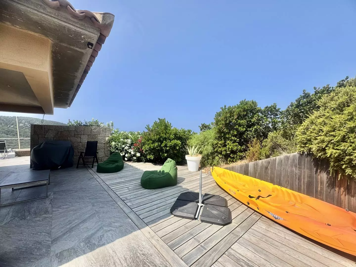 Découvrez cette superbe villa nichée dans le cadre préservé et emblématique de Tizzano en Corse du Sud un lieu confidentiel et authentique prisé pour sa nature intacte sa tranquillité et son charme discret Cette villa offre un cadre de séjour unique à seulement 100 mètres des plages de sable fin des restaurants et des premières commodités tout en bénéficiant d'une vue mer panoramique à couper le souffle