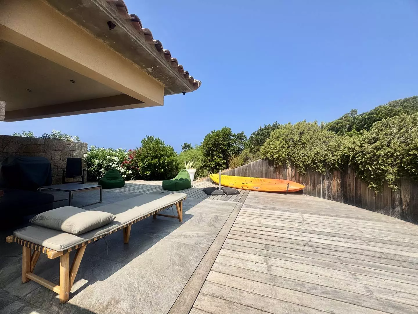 Pensée pour accueillir jusqu'à huit personnes elle se compose d'une cuisine moderne entièrement équipée ouverte sur un vaste séjour lumineux donnant directement sur une grande terrasse qui entoure l'ensemble de l'étage offrant ainsi un espace de vie extérieur exceptionnel face à la mer