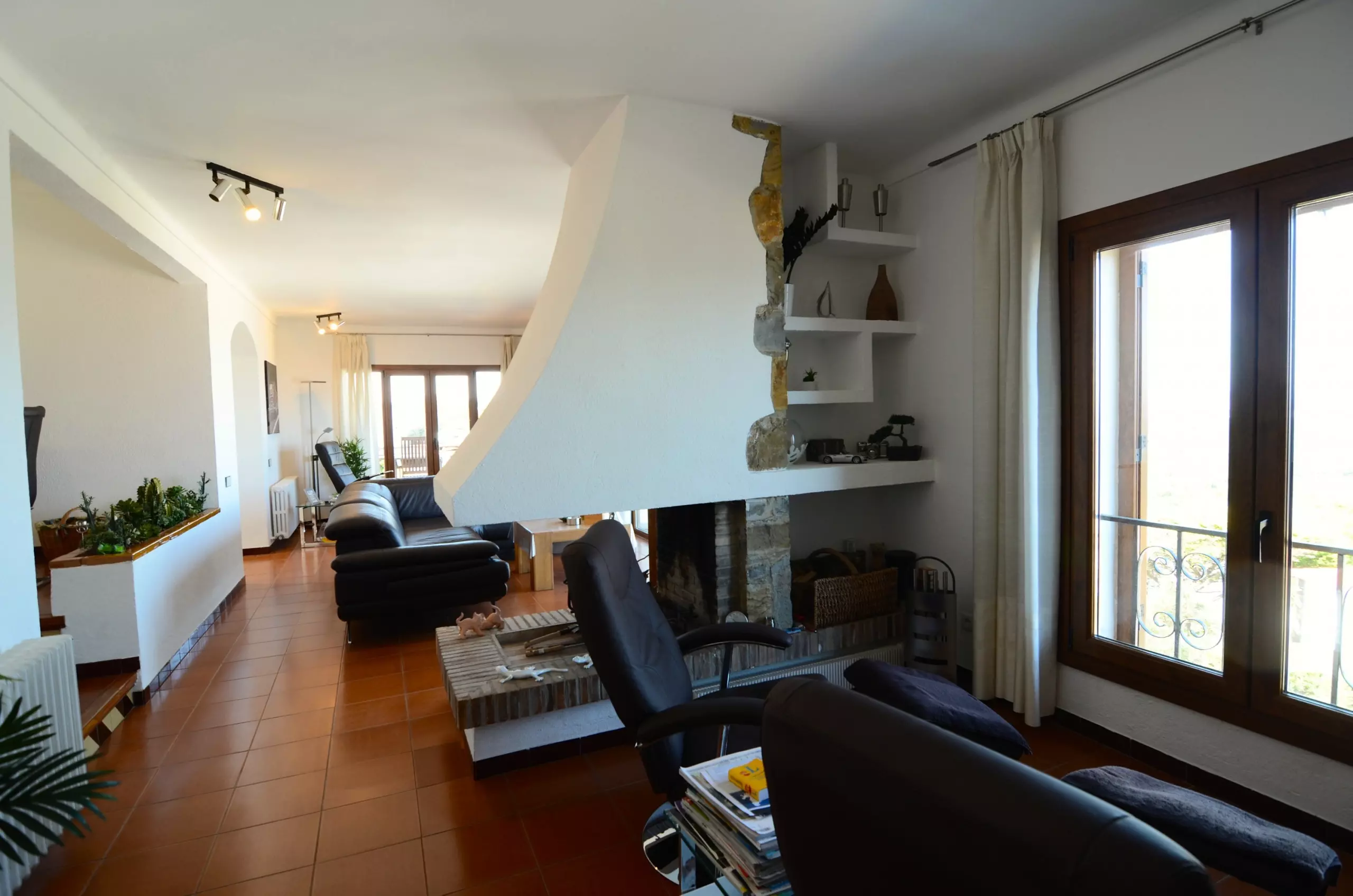 L'intérieur est divisé entre la maison principale et trois annexes : un appartement indépendant, un studio et une zone de bar et de barbecue intérieure pour les repas et les fêtes.